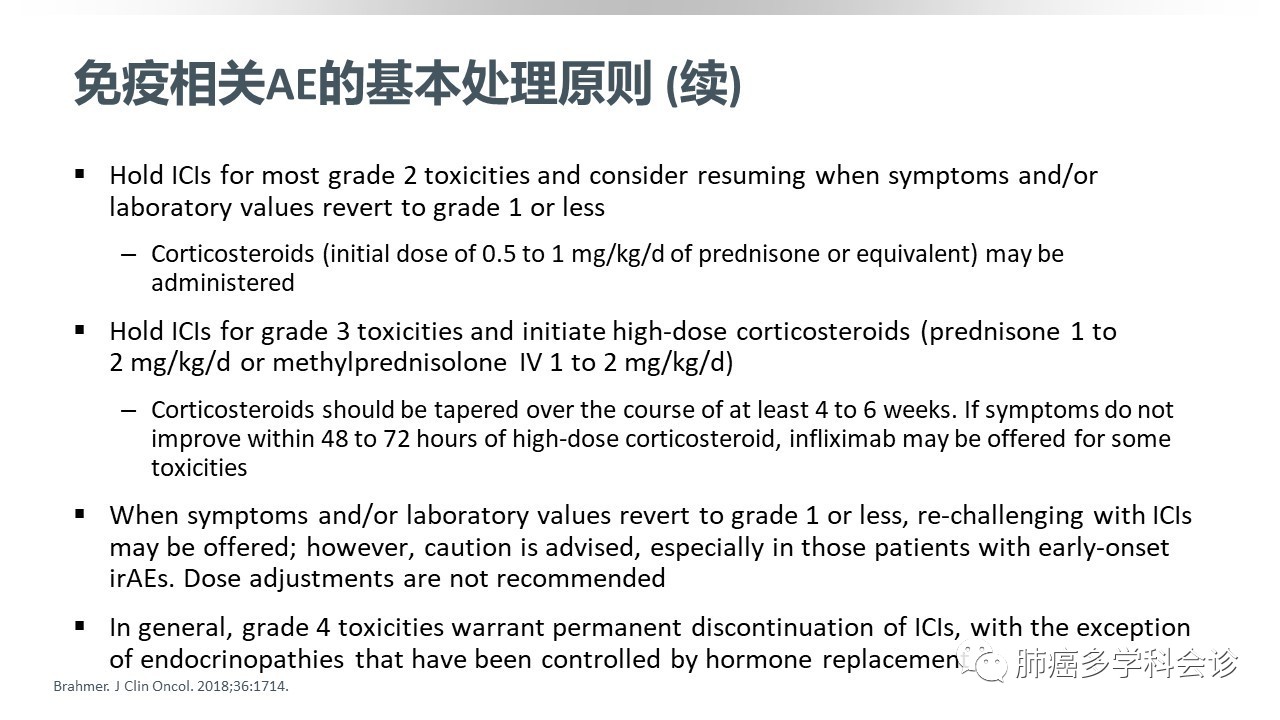 • 对于大多数毒性≥2级的患者,暂停免疫治疗并增加肾上腺糖皮质激素