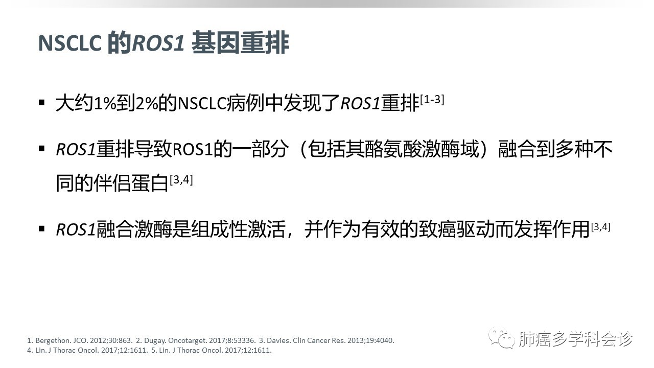 • 大约1%到2%的NSCLC病例中发现了ROS1重排