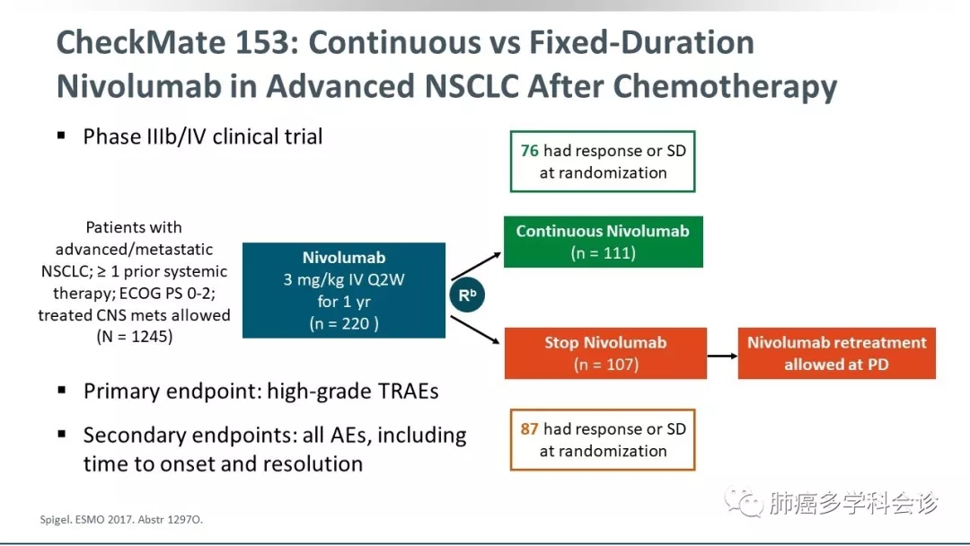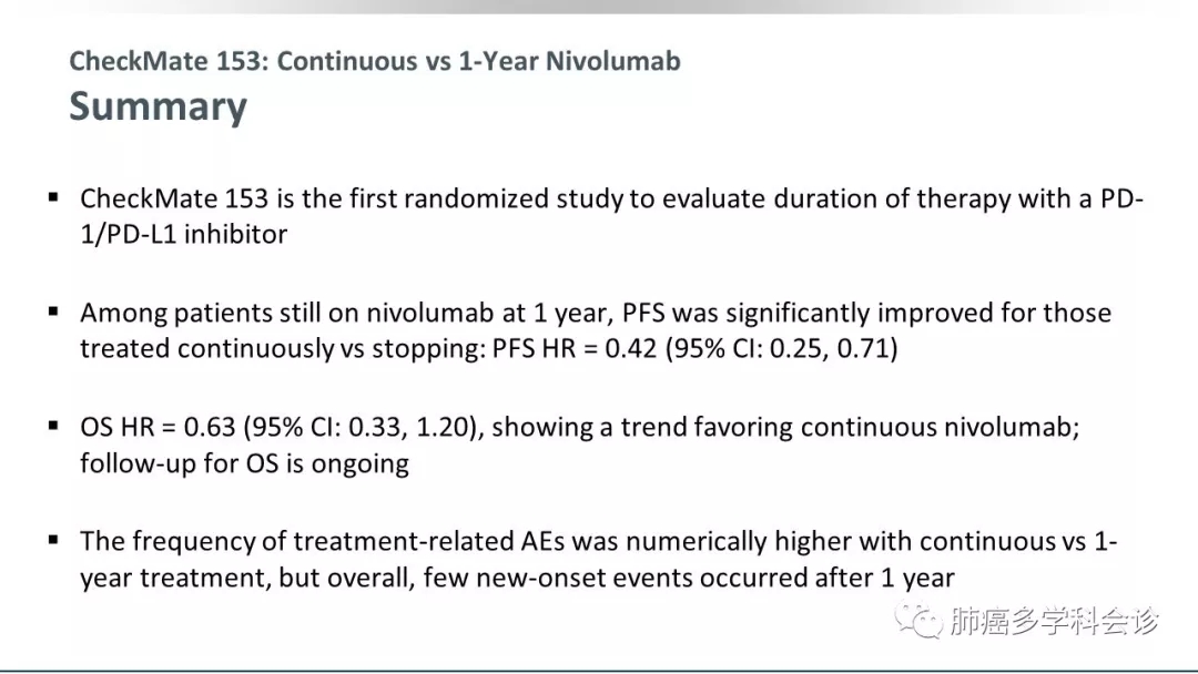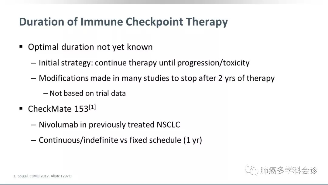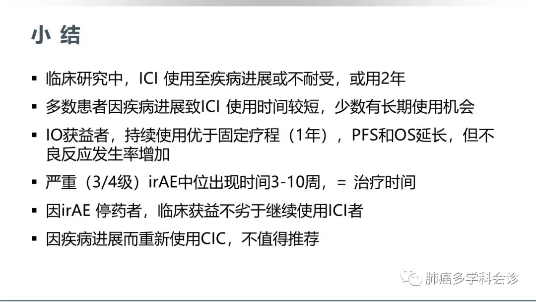 临床研究中,免疫治疗使用至疾病进展或副反应不可耐受,或者连用两年。