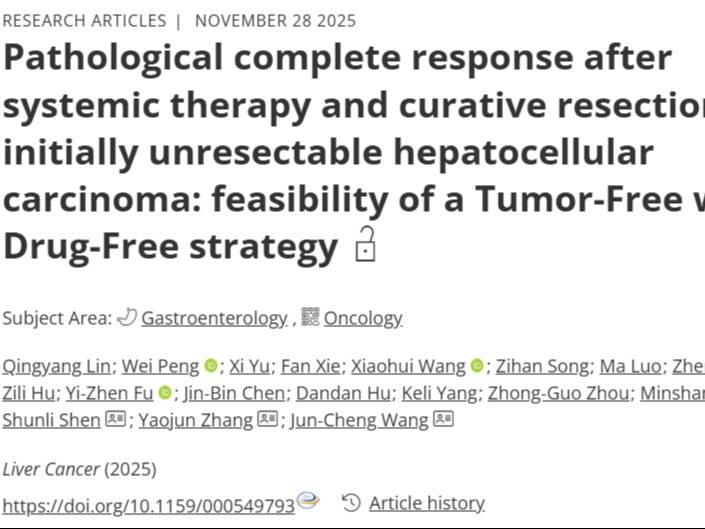 肝癌转化治疗后 pCR 患者“无瘤亦无药”管理策略获证实——陈敏山、张耀军、王骏成团队多中心研究破解临床难题