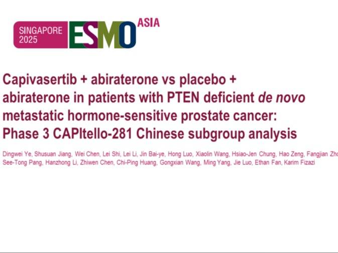 CAPItello-281 研究中国亚组数据公布,Capivasertib 联合阿比特龙显著改善 PTEN 缺失 mHSPC 患者预后