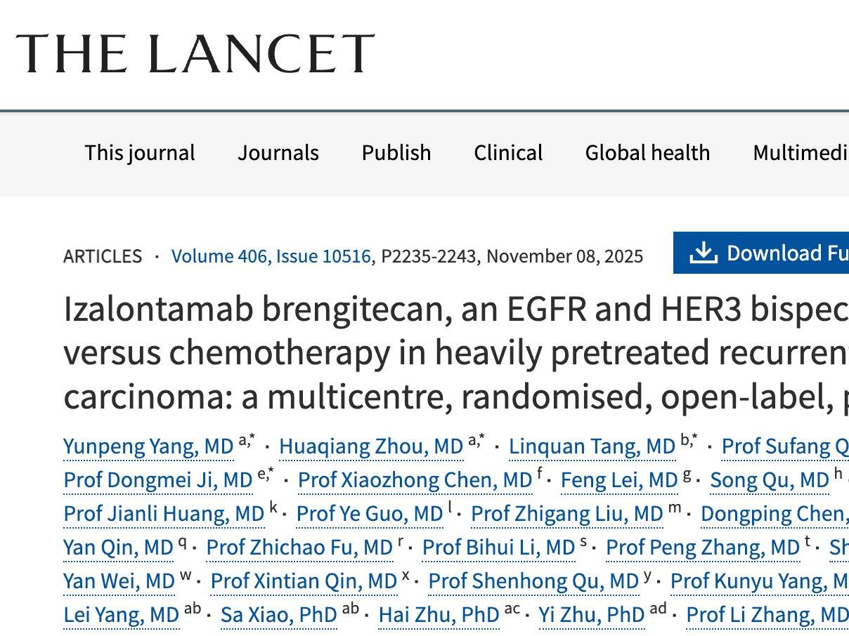有望重塑治疗标准!《柳叶刀》封面推荐张力团队成果