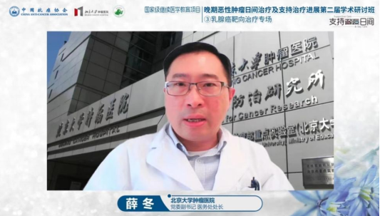 接下来李青教授引出了第二环节主持人,来自北京大学肿瘤医院乳腺肿瘤内科邸立军教授。
