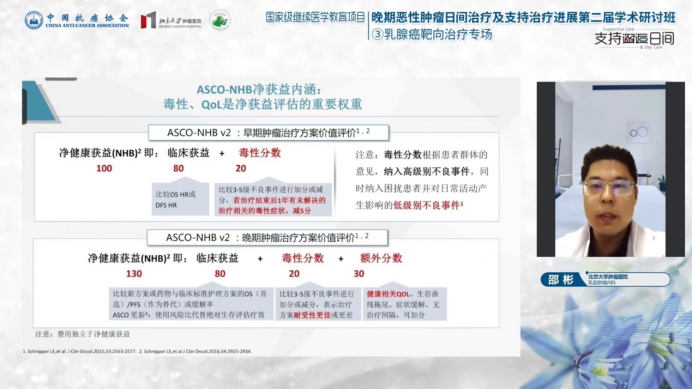 邵彬教授最后指出目前乳腺癌进入慢病化管理,治疗带来的不良反应严重影响患者生存,需进一步改善生存状况和提升生活质量。加强乳腺癌患者管理,提升疗效、降低毒性、改善生活质量、关注长期健康和功能,通过多种治疗方案协同实现早期乳腺癌患者个体化诊疗,实现(新)辅助治疗患者获益/风险最大化。