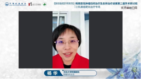 接下来杨俊兰教授作为第二环节主持人引出了第三环节主持人,来自河北大学附属医院肿瘤内科主任杨华教授。