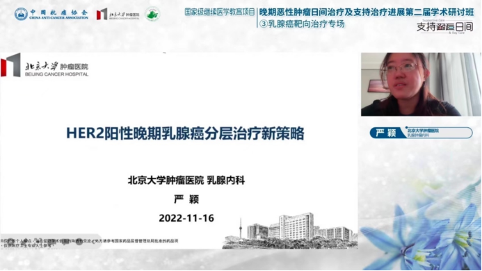 会议最后的环节是由来自北京大学肿瘤医院乳腺肿瘤内科的严颖教授带来的《HER2阳性晚期乳腺癌分层治疗新策略》。