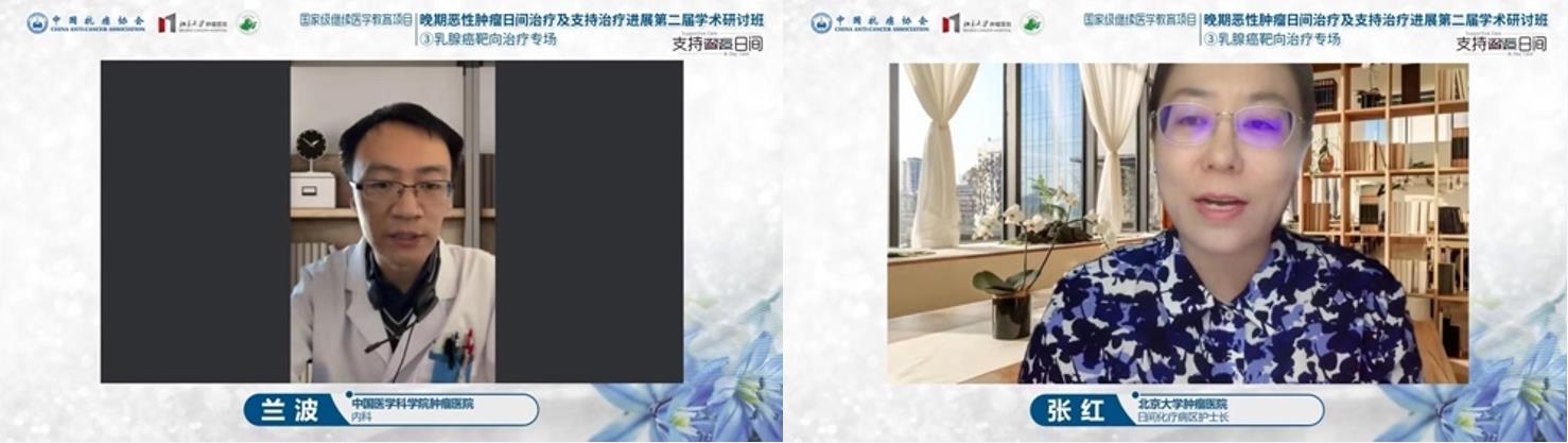 两场报告结束后,国家癌症中心/中国医学科学院肿瘤医院内科兰波教授和北京大学肿瘤医院日间化疗病区张红护士长就上面两位讲者分享进行了精彩的点评。