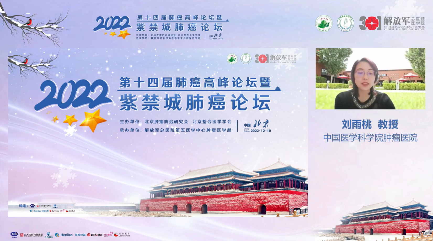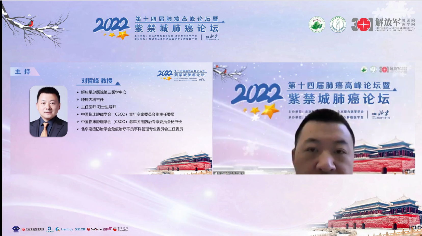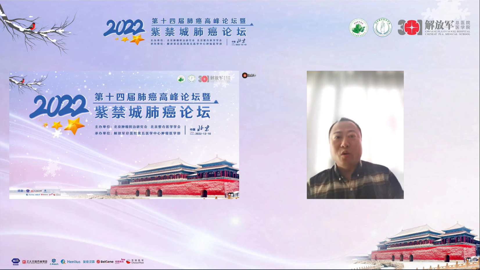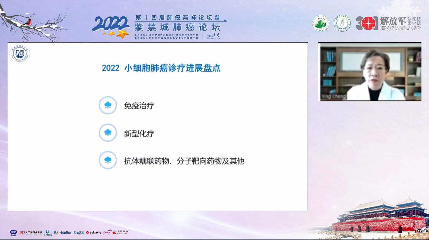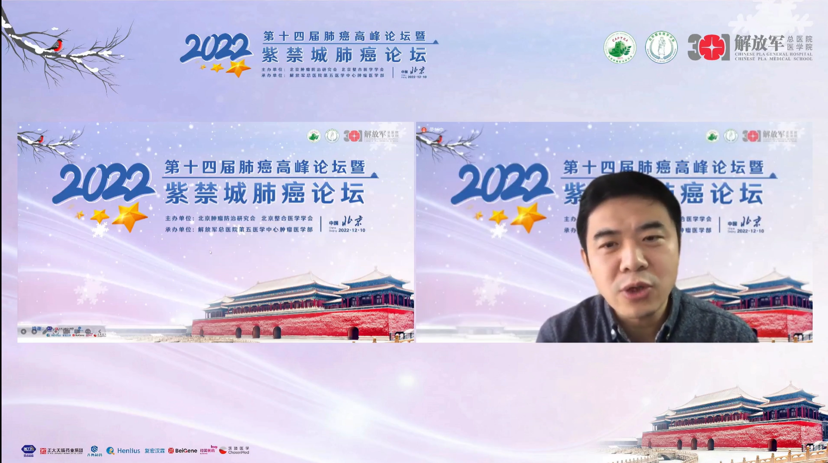 十四载春华秋实,十四载初心不变。由北京肿瘤防治研究会、北京整合医学学会主办,解放军总医院第五医学中心肿瘤医学部承办的“2022第十四届肺癌高峰论坛”暨“紫禁城肺癌论坛”于12月9~10日成功召开!论坛以在线形式举办,由解放军总医院第五医学中心刘晓晴教授、解放军总院胡毅教授共同担任本届执行主席。在7个环节中,四十余位国内著名肺癌领域专家云端相会,带来了14场专场学术报告,共同分享和盘点了近年肺癌领域的新成果和新进展。