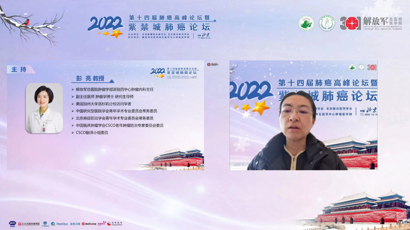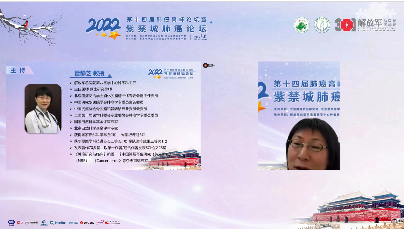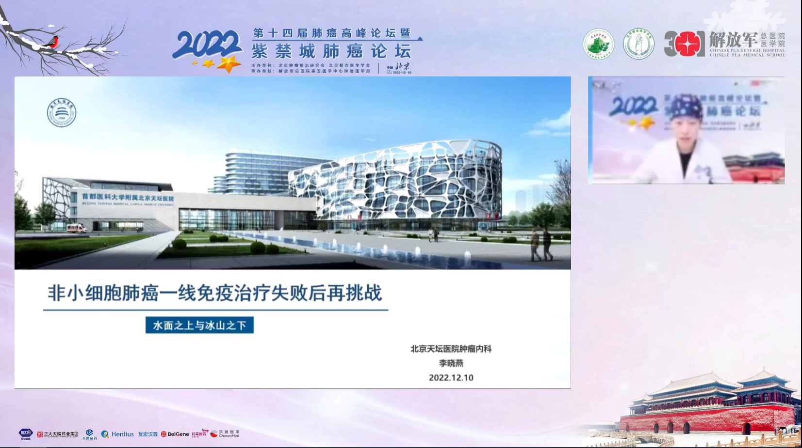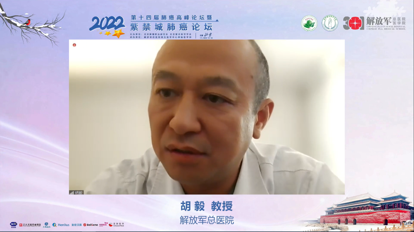 十四载春华秋实,十四载初心不变。由北京肿瘤防治研究会、北京整合医学学会主办,解放军总医院第五医学中心肿瘤医学部承办的“2022第十四届肺癌高峰论坛”暨“紫禁城肺癌论坛”于12月9~10日成功召开!论坛以在线形式举办,由解放军总医院第五医学中心刘晓晴教授、解放军总院胡毅教授共同担任本届执行主席。在7个环节中,四十余位国内著名肺癌领域专家云端相会,带来了14场专场学术报告,共同分享和盘点了近年肺癌领域的新成果和新进展。
