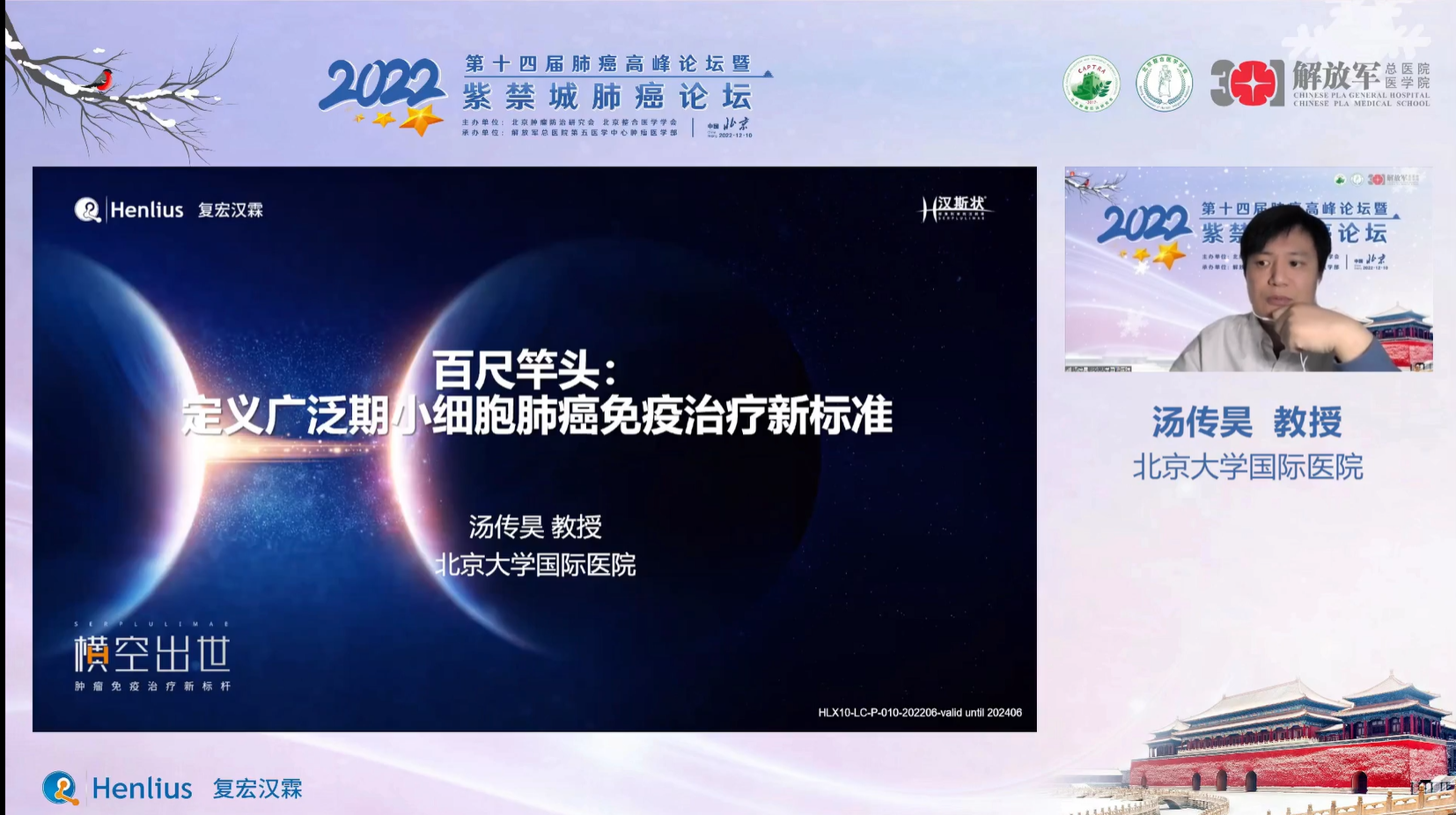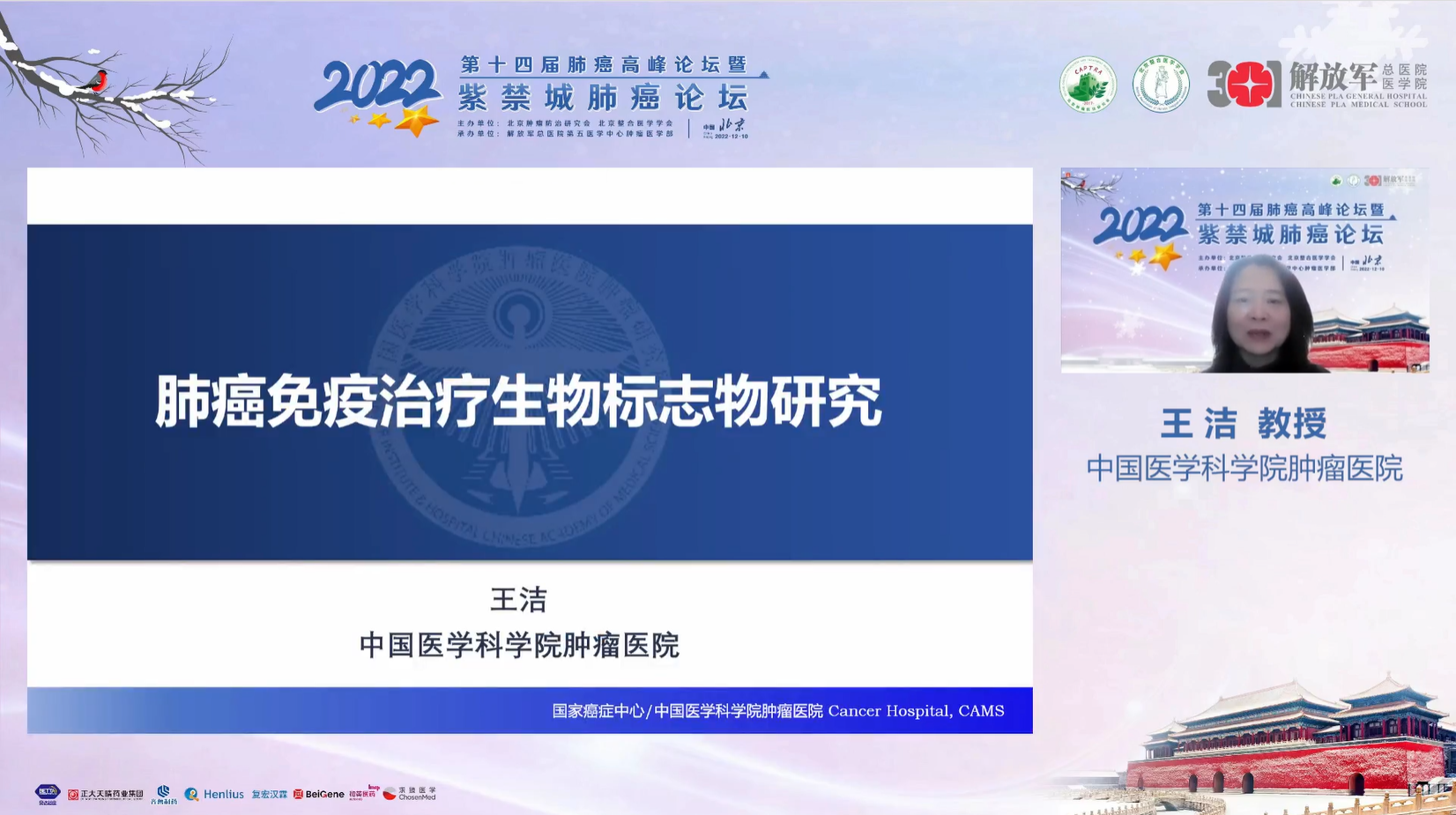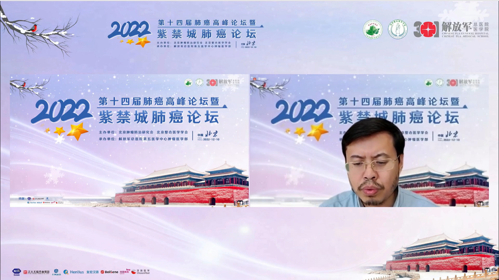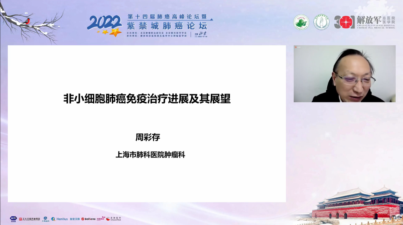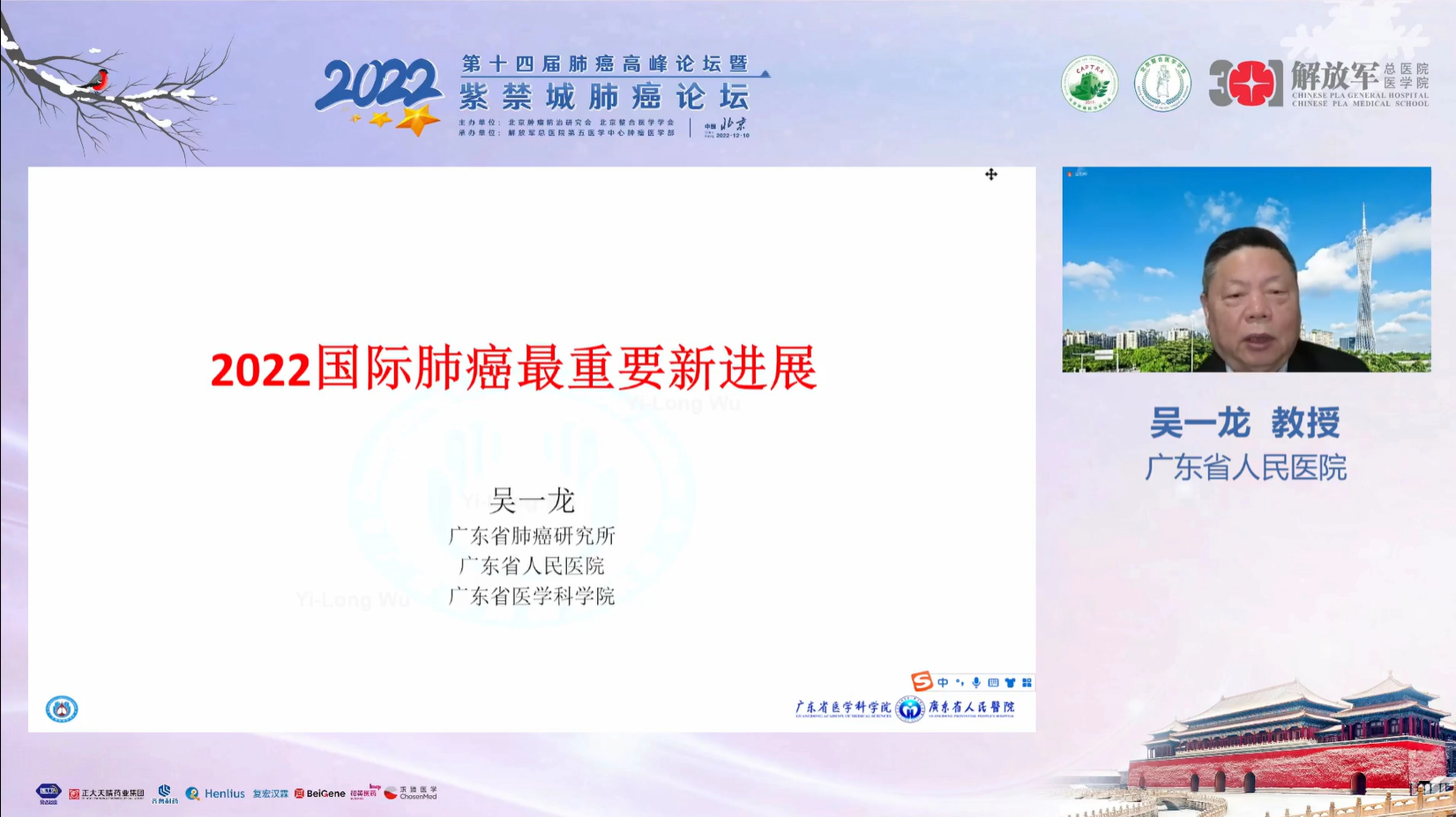 十四载春华秋实,十四载初心不变。由北京肿瘤防治研究会、北京整合医学学会主办,解放军总医院第五医学中心肿瘤医学部承办的“2022第十四届肺癌高峰论坛”暨“紫禁城肺癌论坛”于12月9~10日成功召开!论坛以在线形式举办,由解放军总医院第五医学中心刘晓晴教授、解放军总院胡毅教授共同担任本届执行主席。在7个环节中,四十余位国内著名肺癌领域专家云端相会,带来了14场专场学术报告,共同分享和盘点了近年肺癌领域的新成果和新进展。