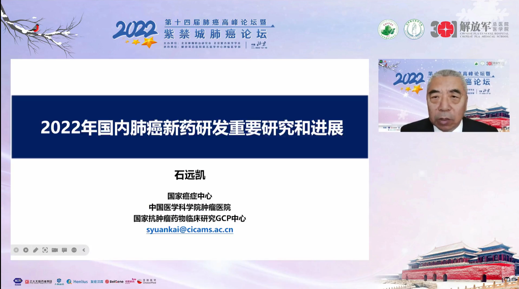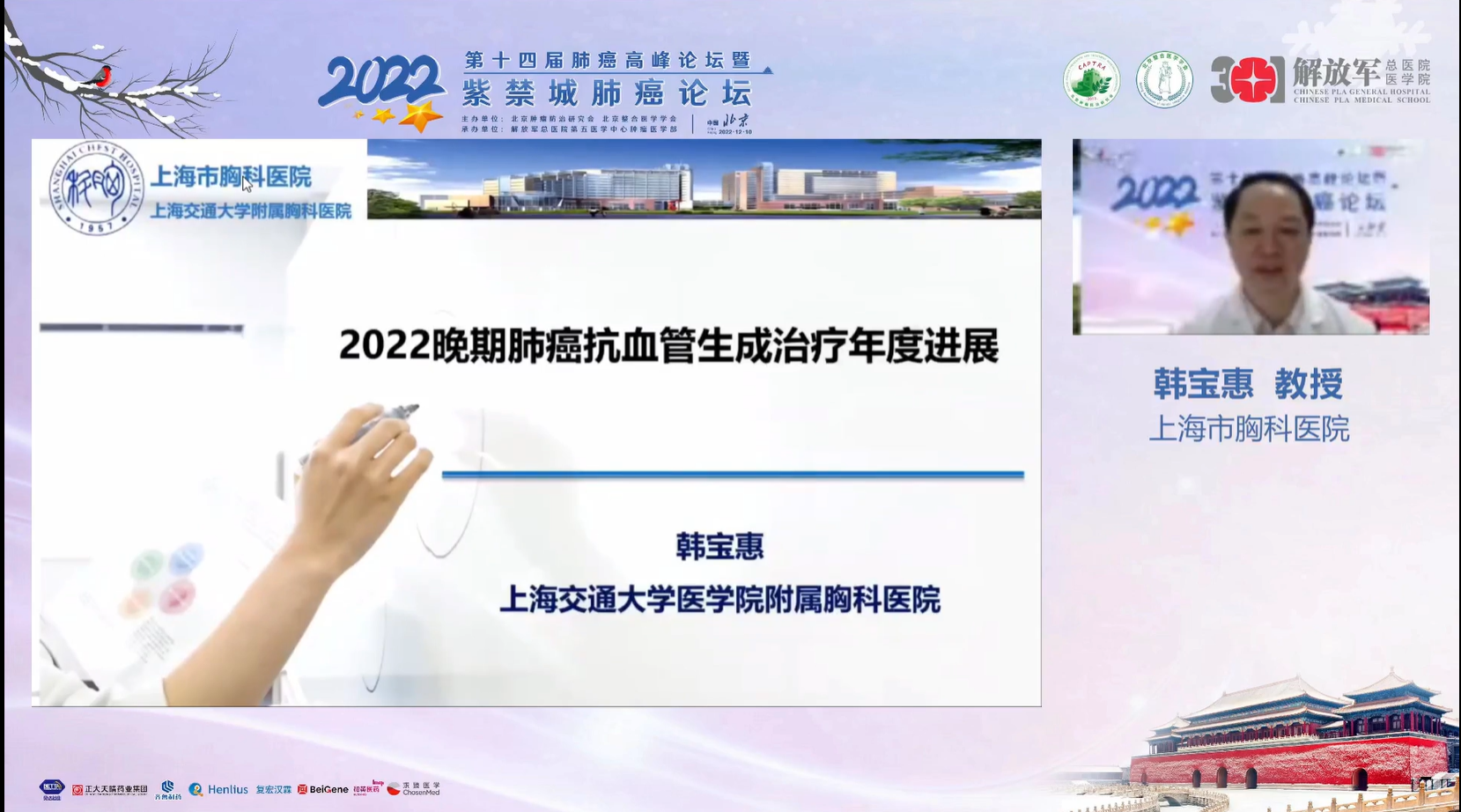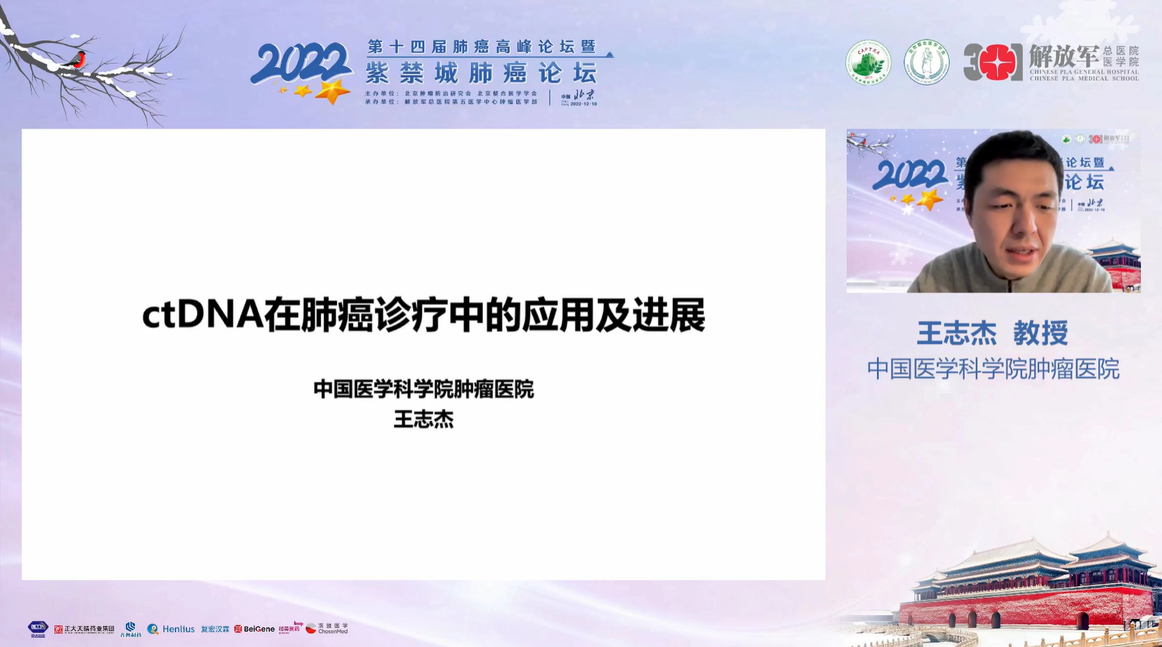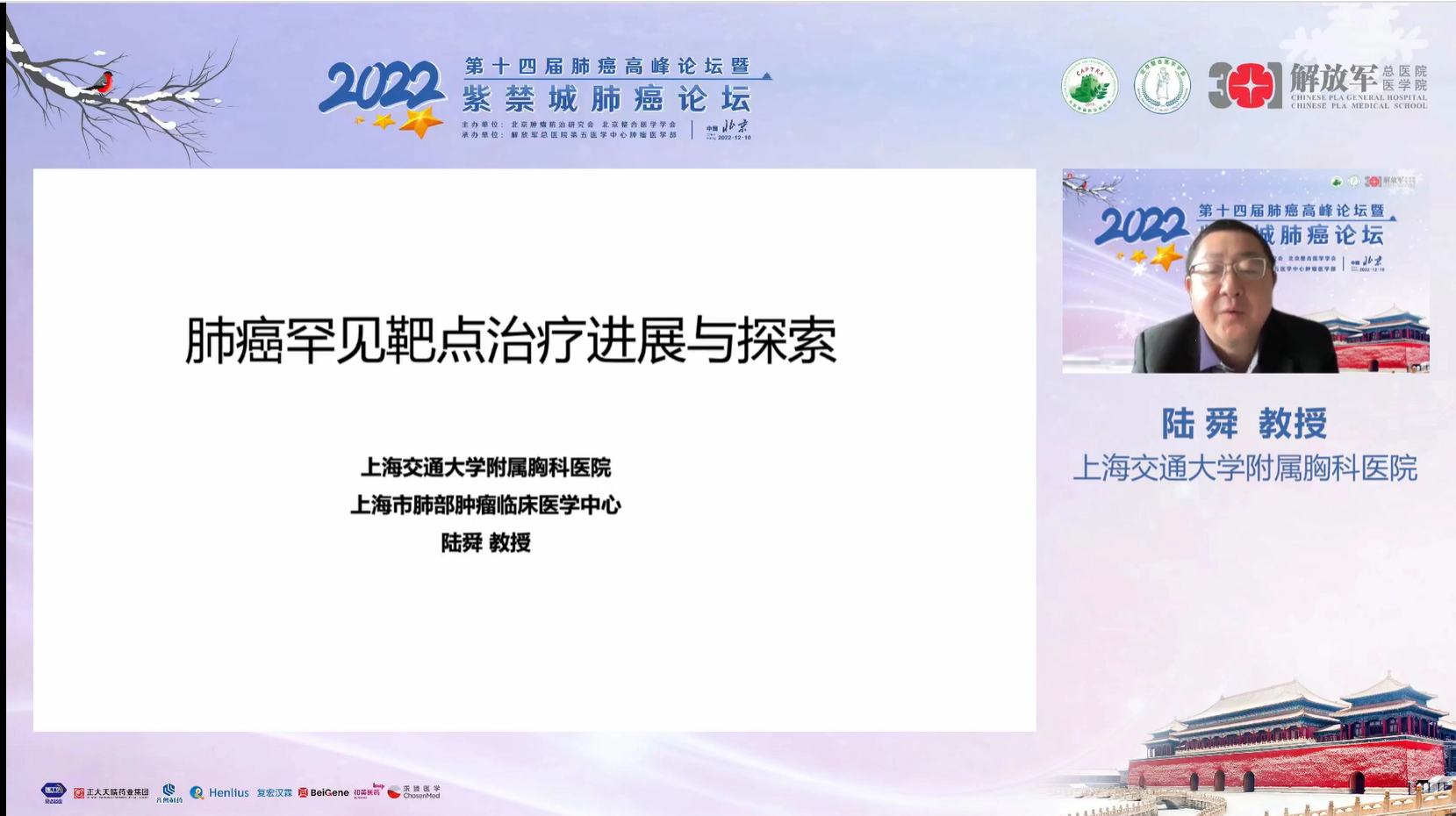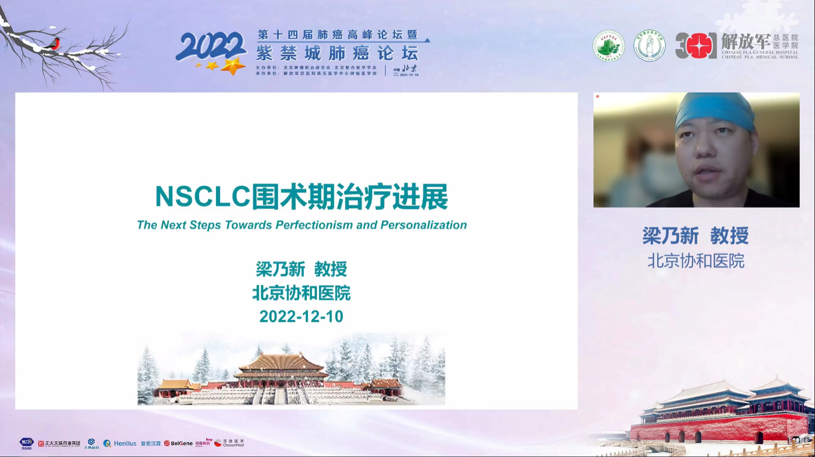 十四载春华秋实,十四载初心不变。由北京肿瘤防治研究会、北京整合医学学会主办,解放军总医院第五医学中心肿瘤医学部承办的“2022第十四届肺癌高峰论坛”暨“紫禁城肺癌论坛”于12月9~10日成功召开!论坛以在线形式举办,由解放军总医院第五医学中心刘晓晴教授、解放军总院胡毅教授共同担任本届执行主席。在7个环节中,四十余位国内著名肺癌领域专家云端相会,带来了14场专场学术报告,共同分享和盘点了近年肺癌领域的新成果和新进展。