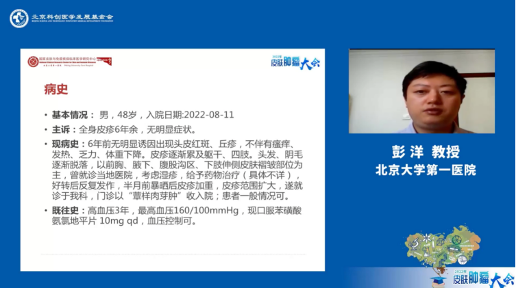 北京大学第一医院彭洋教授围绕一例皮肤T淋巴瘤病例诊疗经过。彭教授强调皮肤淋巴瘤早期皮损表现不特异,患者可能就诊于非皮肤科的其他科室,当发现会诊患者出现类似皮疹时,应考虑到皮肤淋巴瘤的可能性。同时通过多次活检及病理检查、多学科会诊讨论,以明确诊断并将信息交互融通。在治疗方面,早期原发性皮肤淋巴瘤往往预后较好,需慎重选择治疗方案。此外,应当对皮肤淋巴瘤患者进行长期随访和观察,及时给予最恰当的临床诊疗。