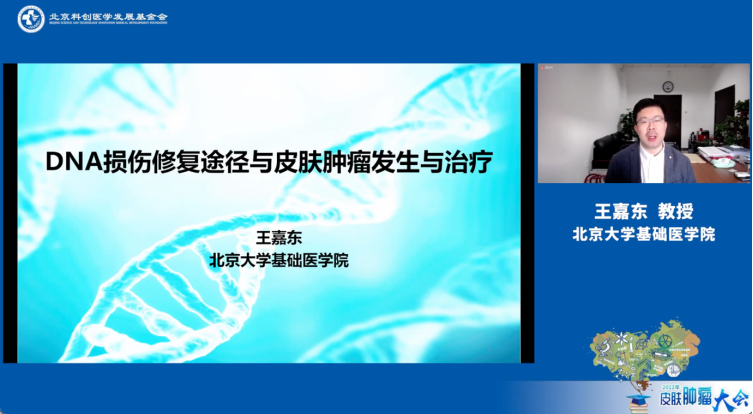 紧接着北京大学基础医学院王嘉东教授就“DNA损伤修复和皮肤肿瘤的发生和治疗”进行演讲。王教授深入浅出地讲解了DNA损伤反应缺陷导致的细胞基因组不稳定性导致了癌症的发生。对DNA损伤与皮肤炎症的反应、TC-NER内源损伤的突破方向进行了展望,并在最后提出了对免疫原性的相关天然免疫通路深入开展将是未来研究的方向,以确定DNA损伤的具体特征,将有助于癌症患者的个性化治疗。