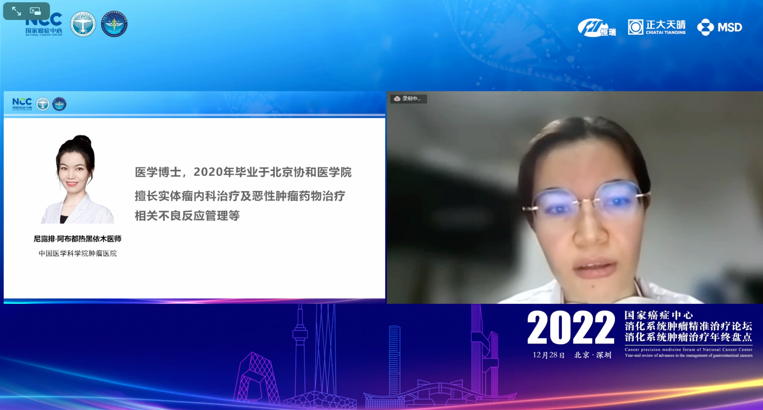 在华中科技大学附属同济医院袁响林教授主持下,中国医学科学院肿瘤医院尼露排·阿布都热黑依木医师、中国医学科学院肿瘤医院杨林教授、中国医学科学院肿瘤医院深圳医院王颖教授围绕上述讲题分享其独到见解。