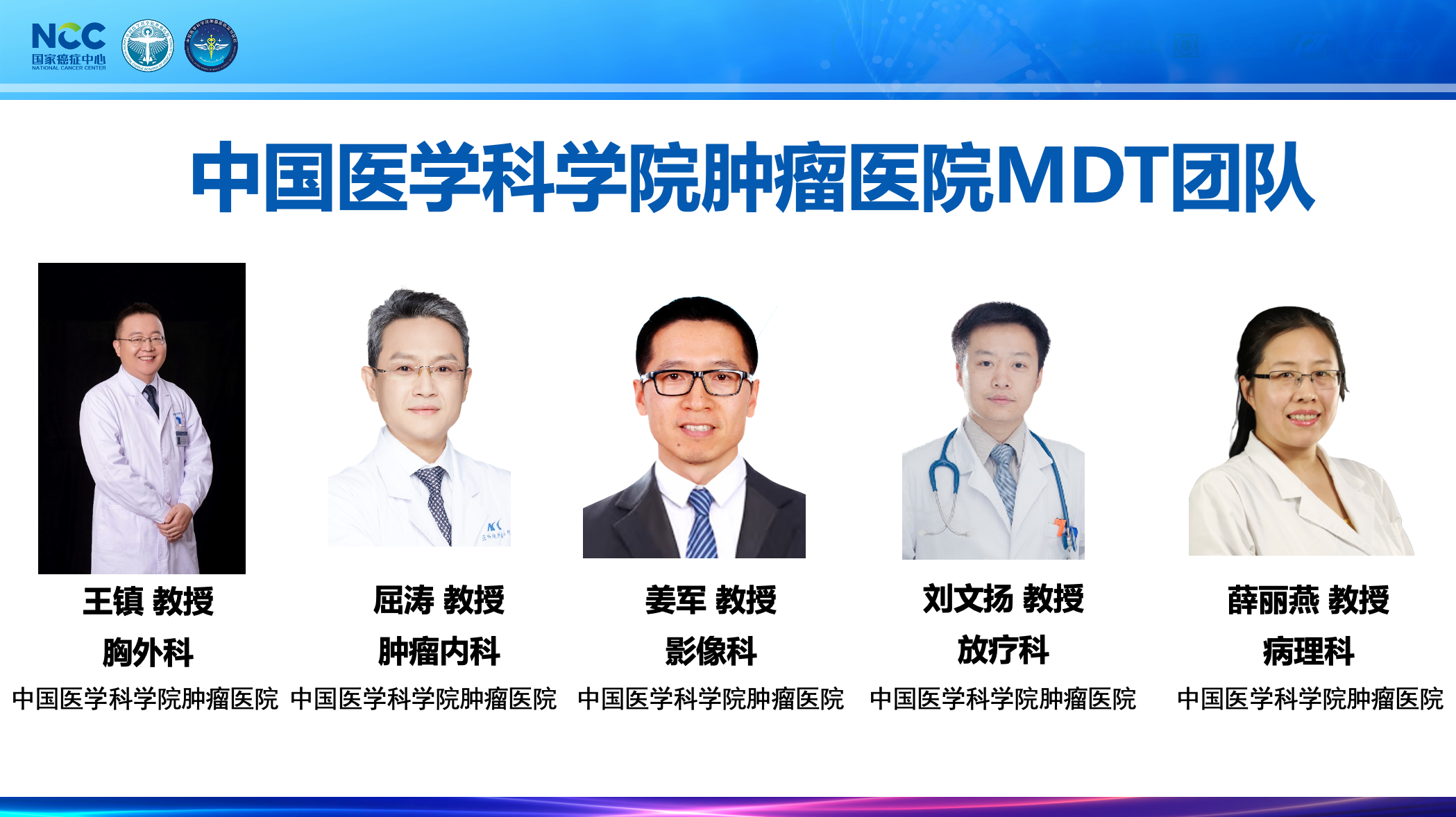 在中国医学科学院肿瘤医院王兴元教授主持下,中国医学科学院肿瘤医院辛道博士带来一例“食管胸下段鳞癌cTxN+M0(不可切除局部晚期)”病例分享,并提问“转化成功后下一步治疗应如何选择:手术?继续化疗+PD1单抗治疗?放疗?同步放化疗?胃镜复查后采取内镜下治疗?”。中国医学科学院肿瘤医院MDT团队中病理科薛丽燕教授和影像科姜军教授分别对患者病理结果及胸部CT结果进行解读后,肿瘤内科屈涛教授表示该患者转化治疗成功后应积极进行手术,新辅助治疗方案优化以及多学科联合诊疗均可为患者带来获益。胸外科王镇教授表示该患者全身治疗效果佳,继续手术虽有望带来长期获益但切喉影响后期生存质量,并表示未来准确的疗效评估十分重要。放疗科刘文扬教授表示该患者治疗方案是医患为保障疗效进行的共同选择,希望未来疗效评估的进一步发展。