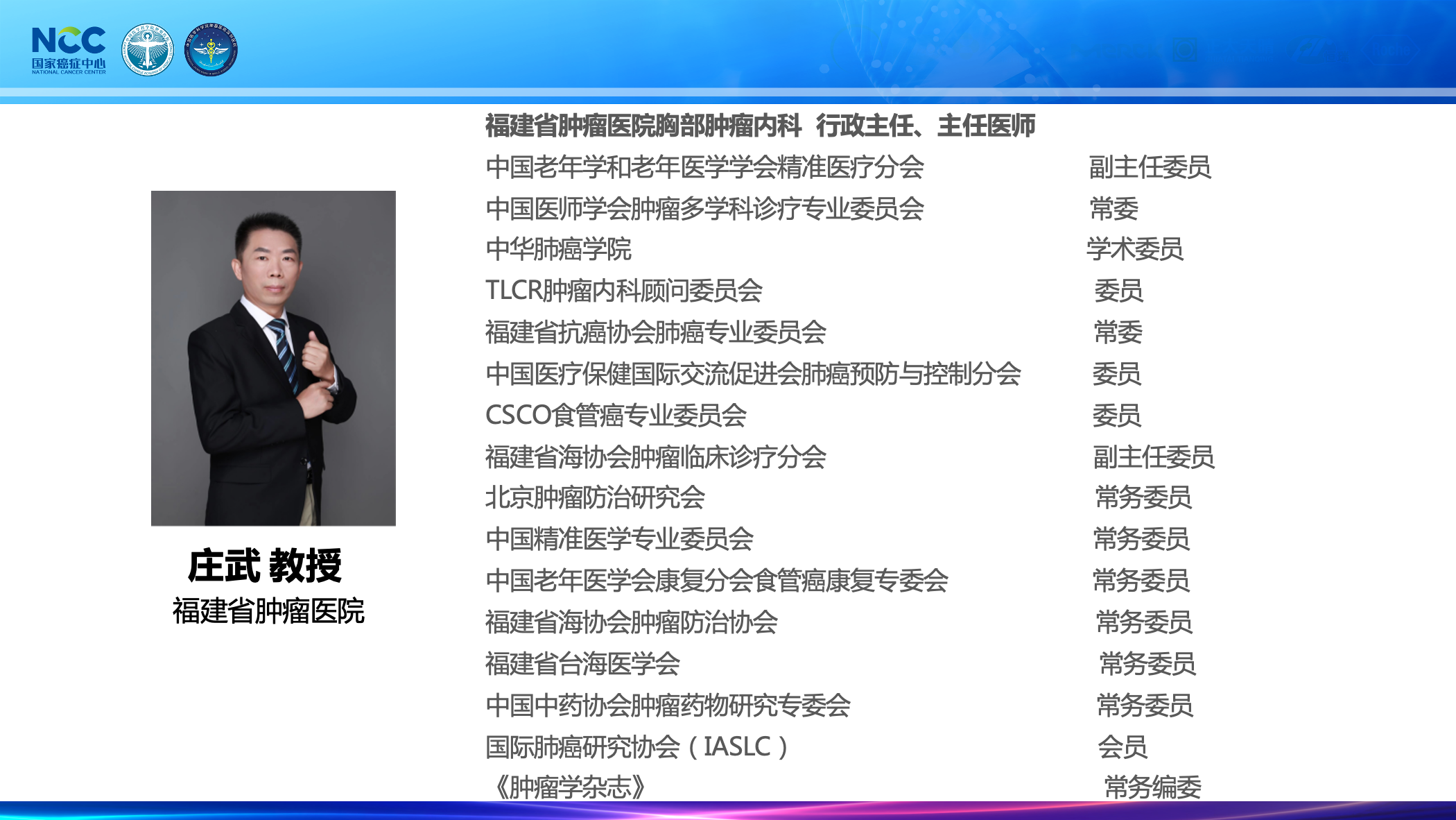 在福建省肿瘤医院庄武教授主持下,河南省肿瘤医院刘莺教授带来“食管及胃食管结合部癌精准治疗进展”分享,围绕HER-2阳性治疗进展、Claudin18.2治疗进展、DKK-1抑制剂以及FGFR2抑制剂进行阐述。对于HER-2阳性治疗进展,新型靶向药物以及靶向治疗联合免疫治疗或可为这类患者新的选择和治疗希望,期待更大样本的研究数据进一步验证这一探索方向。对于Claudin18.2靶点,其靶向药物联合化疗以及CLDN18.2CART细胞疗法是目前在食管癌中探索热点。此外,DisTinGuish试验显示DKK-1成潜力靶点,期待更多研究数据。最后,FIGHT研究结果支持FGFR2抑制剂联合治疗改善患者预后,期待其3期研究结果。