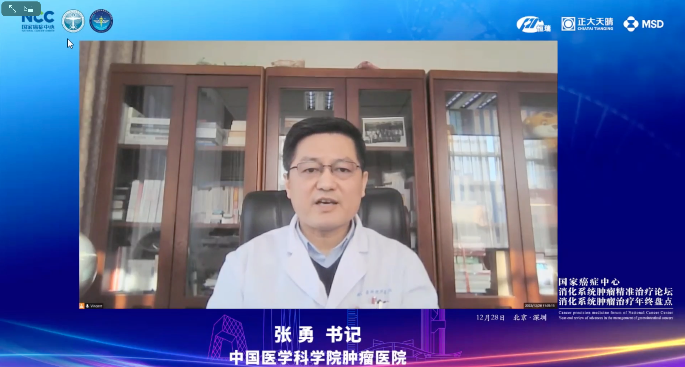赫捷院士对在当下形势下仍坚守岗位的医务工作者给予充分肯定,并表示消化道肿瘤因其发病率及死亡率位居恶性肿瘤发病率和死亡率的前列备受关注,本次会议中业内专家相聚云端共同探讨,有助于我国消化系统肿瘤诊疗事业发展,最终造福患者。最后,赫院士预祝大会圆满成功!张勇书记表示在岁末之际回顾,我国消化系统肿瘤诊疗取得可喜进展但诊疗形势仍旧严峻,希望本次会议能为同道提供一个成果交流及理论研究的高质量平台,碰撞学术思维,催生创新思想。希望新的一年中,国家癌症中心以及消化系统肿瘤领域同道共同促进肿瘤事业不断发展,预祝本次会议圆满成功!刘芝华副院长表示本次会议涉及内容丰富且选题新颖,回顾今年研究成果以期新的一年能够取得更佳成果,预祝本次会议圆满成功!