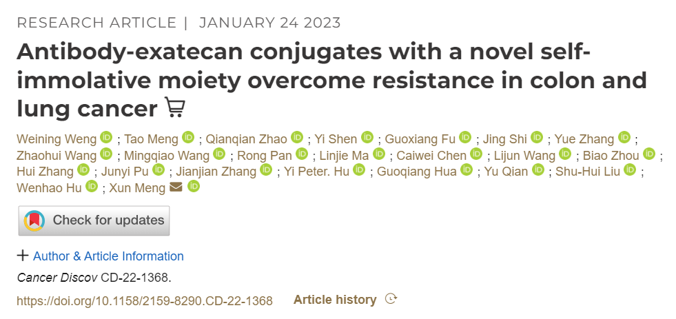 [1] Weng et al., (2023). Antibody-exatecan conjugates with a novel self-immolative moiety overcome resistance in colon and lung cancer. Cancer Discovery, https://doi.org/10.1158/2159-8290.CD-22-1368