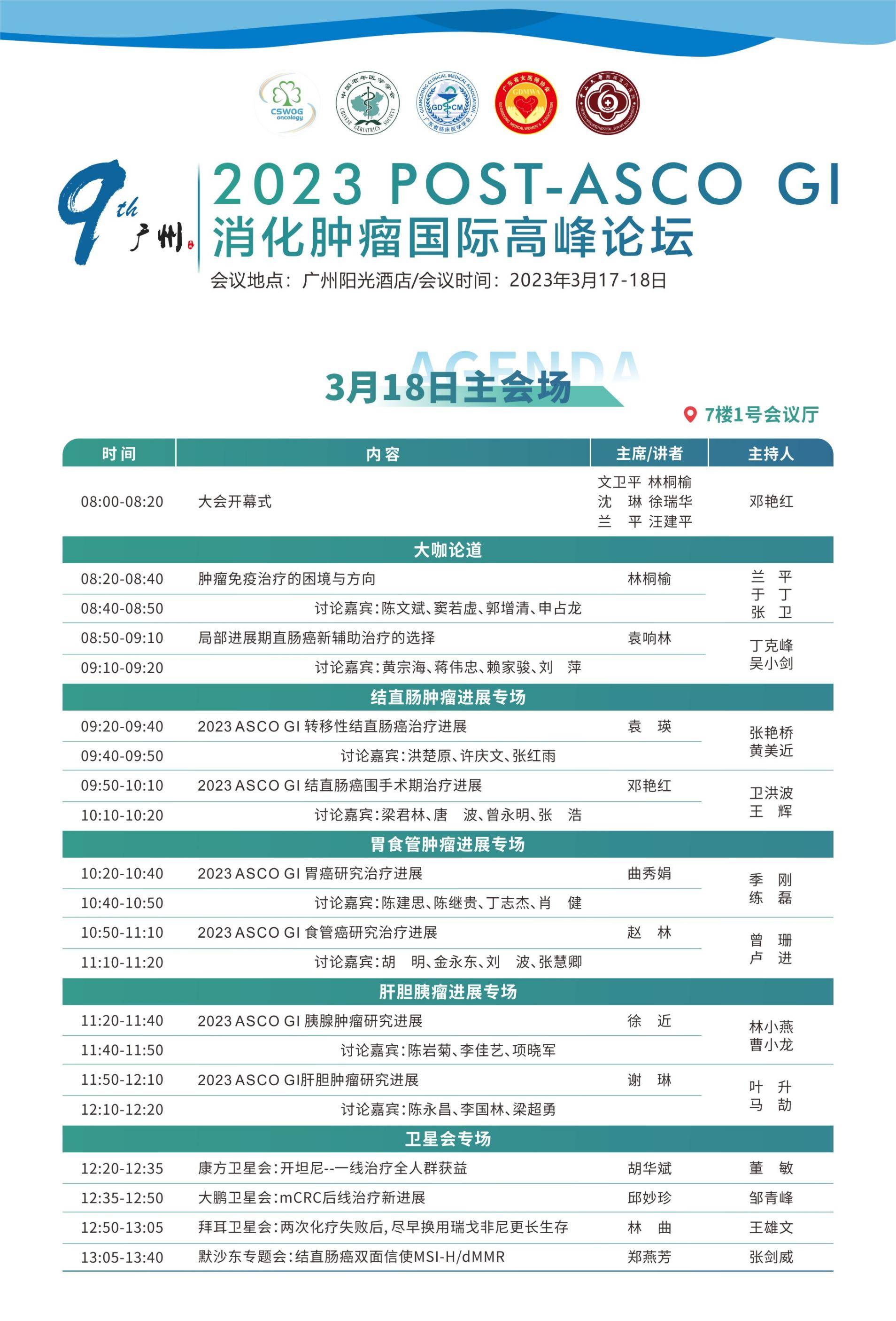 ASCO GI是消化道肿瘤领域最高水平的世界级学术盛会。2023年ASCO GI再次向全球传递了消化道肿瘤领域的最新科研成果。为了让国内同行及时了解最新进展,由南方肿瘤临床研究协会(CSWOG)、中国老年医学会肿瘤分会、广东省临床医学学会、广东省女医师协会消化肿瘤专业委员会主办,中山大学附属第六医院承办的国家级继续教育项目-9th POST ASCO GI(2023)会议将于20233月17~18在广州阳光酒店召开。