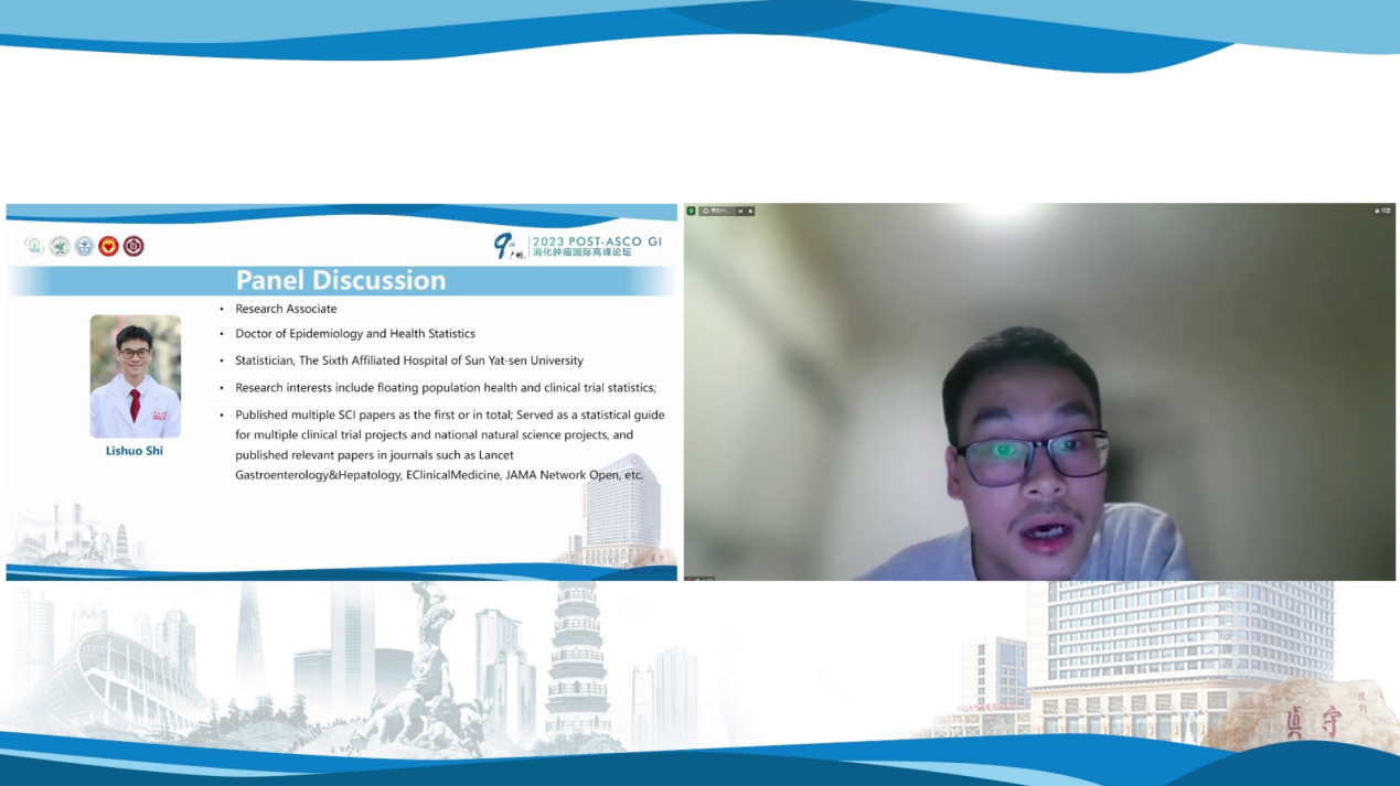 在讨论环节中,中山大学附属第六医院Lishuo Shi研究助理、张剑威教授、JiaYu Ling医生、Yue Cai医生、Xiaoyu Xie硕士、Zehua Wu医生围绕伞式研究及篮式研究P值调整必要性以及相应场景、不同类型临床研究适用场景、临床研究界值设定考量因素、肿瘤临床研究评价指标选择、1期研究临床价值判断等话题进行提问,随后Hao Liu教授进行深入且详细解答。