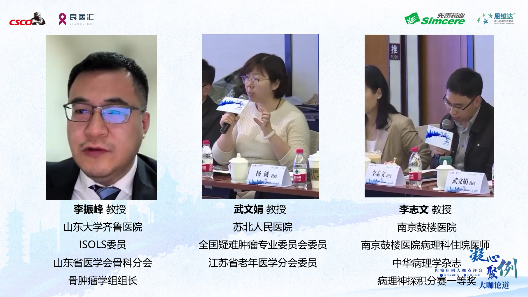 随后,山东大学齐鲁医院李振峰教授,苏北人民医院武文娟教授和南京鼓楼医院李志文教授对滑膜肉瘤的基因检测时间点、术前放疗与术前新辅助治疗进行了热烈的讨论,阐述了各自如何坚守规范化治疗的同时进行个性化探索策略,对临床实践具有切实的指导意义。