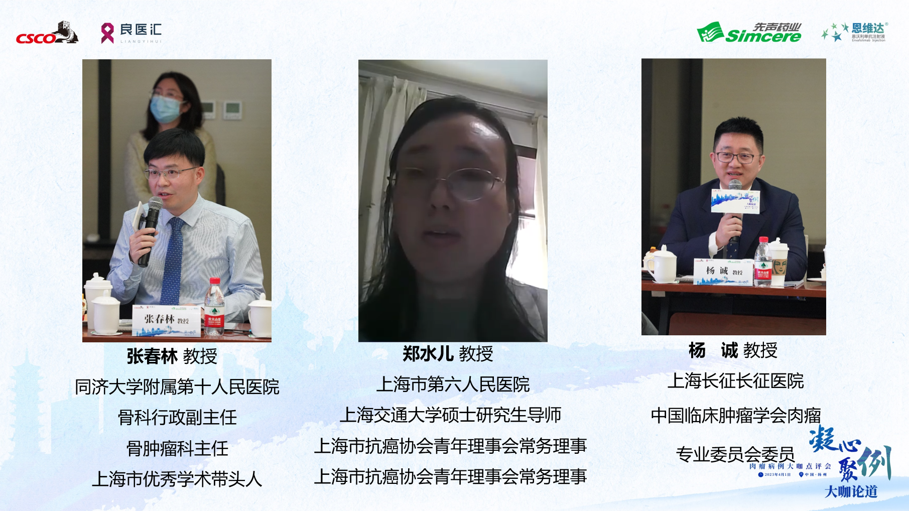 针对徐教授分享的骨肉瘤病例,在周教授的主持下,来自同济大学附属第十人民医院 张春林教授,上海市第六人民医院郑水儿教授和上海长征医院杨诚教授进行了热烈的讨论。骨肉瘤好发于青少年,规范的术前新辅助化疗、手术和术后辅助化疗极其重要。但不可否认的是,肉瘤领域相对于肿瘤,如肺癌、黑色素瘤等,其免疫治疗和靶向治疗研究起步都是比较晚。目前临床研究的数据较为有限,亟需开展更为深入的肉瘤领域的临床研究,以探索化疗耐药患者的治疗手段。同时,肿瘤治疗的经济负担也是临床患者进行诊疗决策的考量因素。期待未来分子检测可以惠及更多的大众患者,实现早期精准治疗,改善患者的生存获益,提升生活质量。
