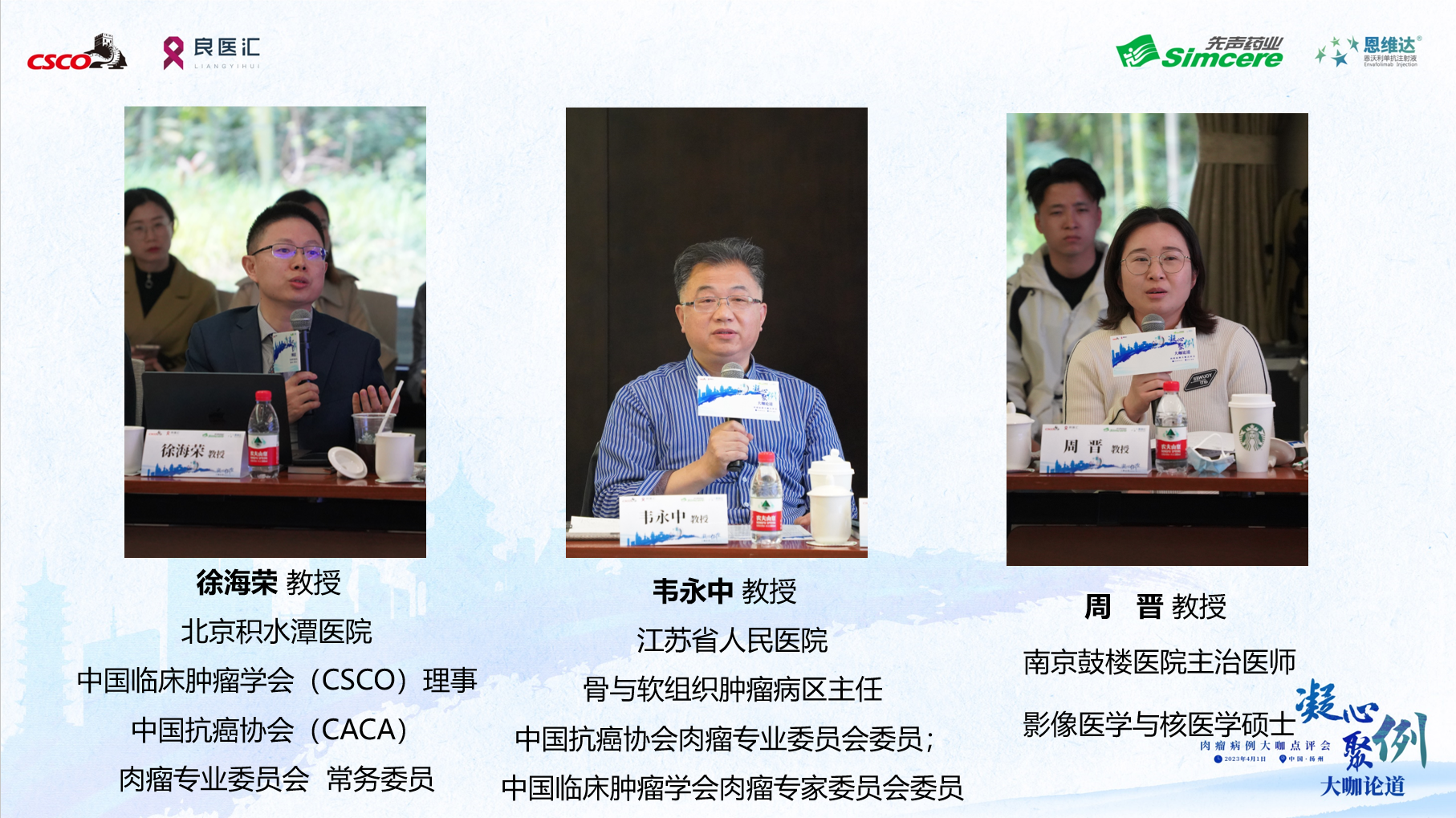 该病例的MDT讨论邀请到了北京积水潭医院徐海荣教授、江苏省人民医院韦永中教授和南京鼓楼医院周晋教授,围绕病例的肺转移的诊疗标准、内科评价周期决策和后续治疗方案如何选择进行精彩讨论。纤维肉瘤存在高复发风险,针对这类患者的影像学基线和全面评估以及规范治疗,各位专家分享了自己的宝贵经验。