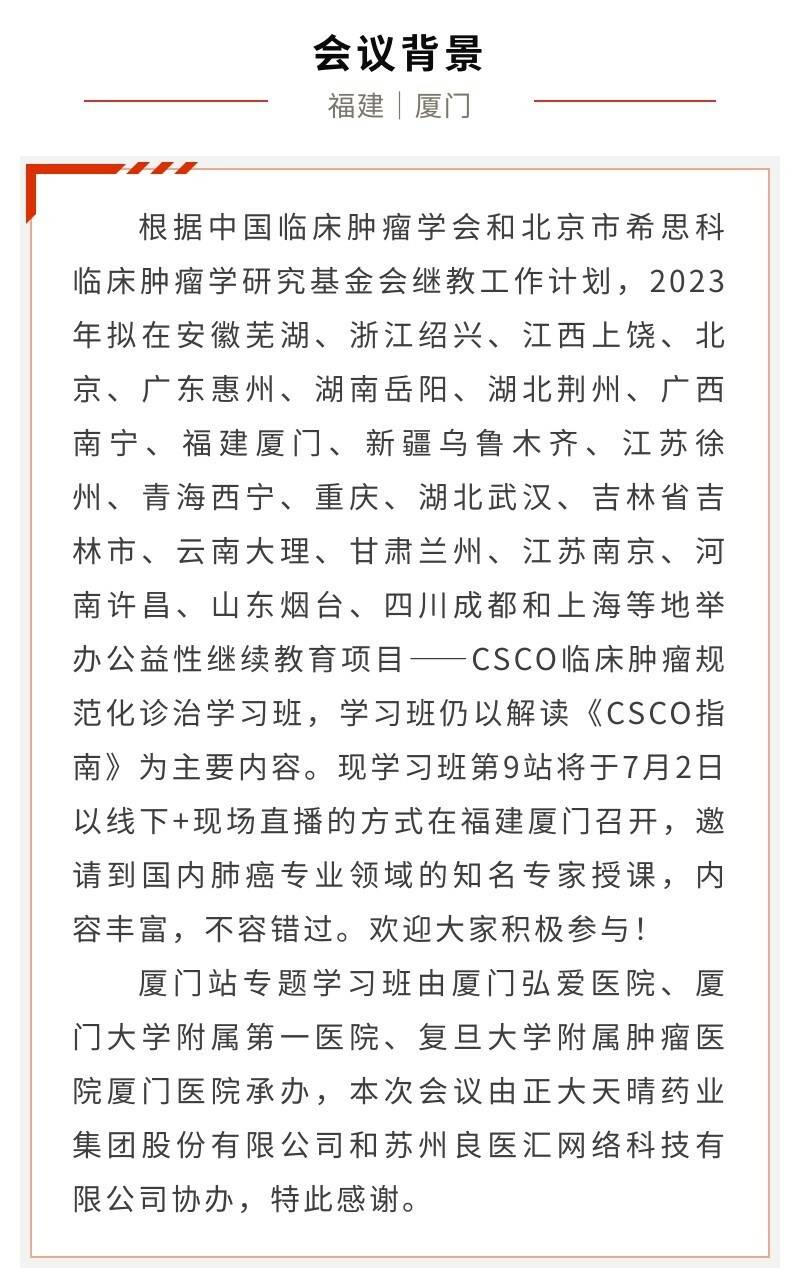 【会议预告】2023 CSCO肺癌规范化诊治专题学习班(厦门站)