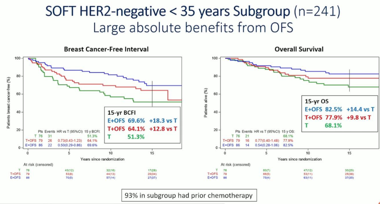 图3 SOFT研究HER2阴性人群<35岁亚组的BCFI(左)和OS(右)结果
