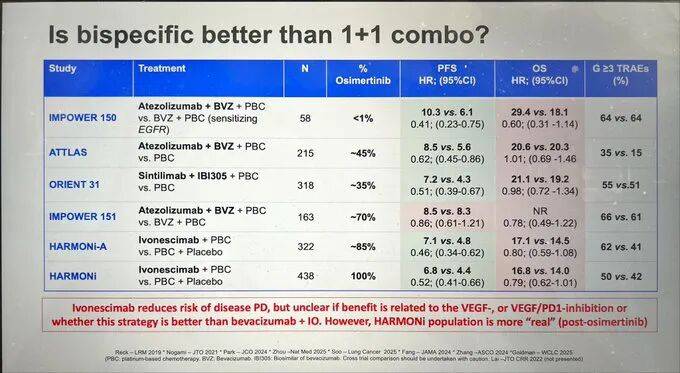 正如埃默里大学Ramalingam博士等专家的观点:“依沃西单抗在EGFR突变肺癌中的表现,更像是VEGFi的延续,而非双靶点的创新。”对临床医生而言,若药物的核心价值只是抗血管生成,那在处方时,就会更倾向于选择“已知安全、机制明确”的传统VEGFi,而非“带着PD-1抑制标签、却无免疫获益”的双抗——毕竟,额外的irAEs对患者而言,也是一种潜在负担。