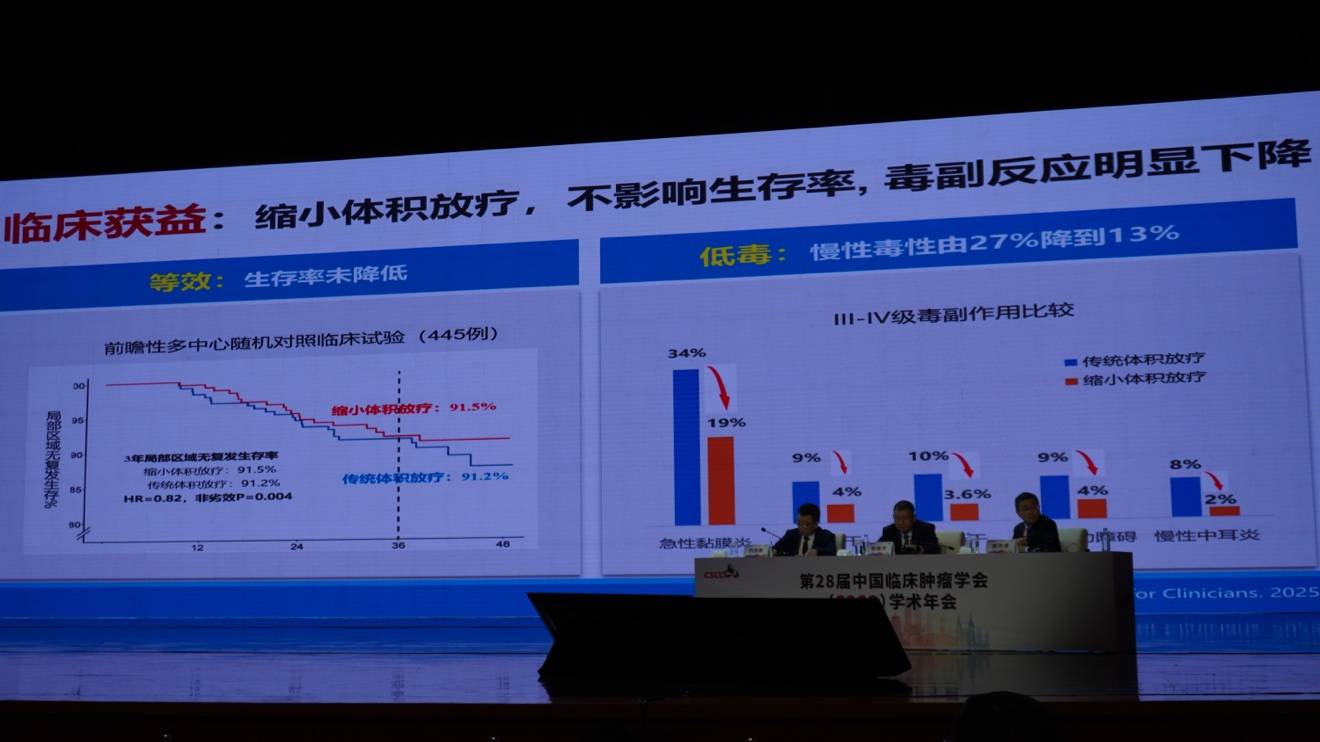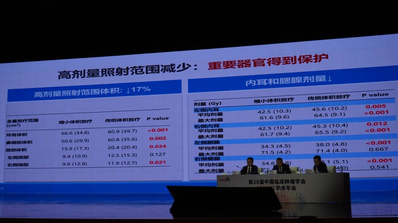 该团队开展的临床研究证实:放疗范围仅包括化疗后残留肿瘤,并未降低患者的生存率,反而显著降低了放射性黏膜炎、口干等毒副反应。高剂量照射范围缩小了17%,内耳、腮腺等重要器官的受照剂量也明显下降,患者的总体健康状况、体力状况、食欲及吞咽功能等生活质量指标得到显著改善。
