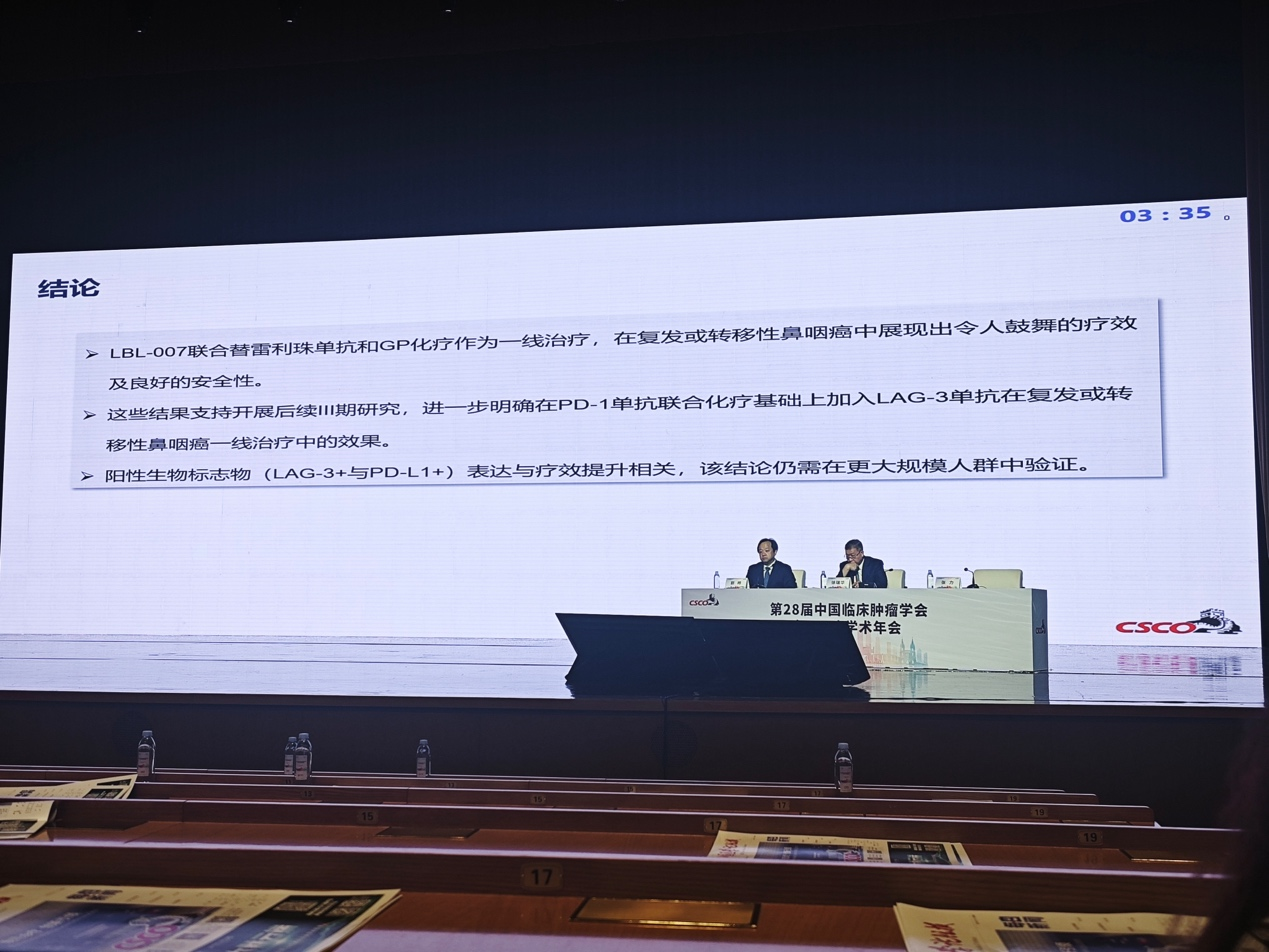 2025 CSCO|张力教授:抗 LAG-3 单抗 LBL-007 联合抗 PD-1 替雷利珠单抗和化疗在既往未经治疗的复发或转移性鼻咽癌 (R/M NPC) 患者中的 II 期研究
