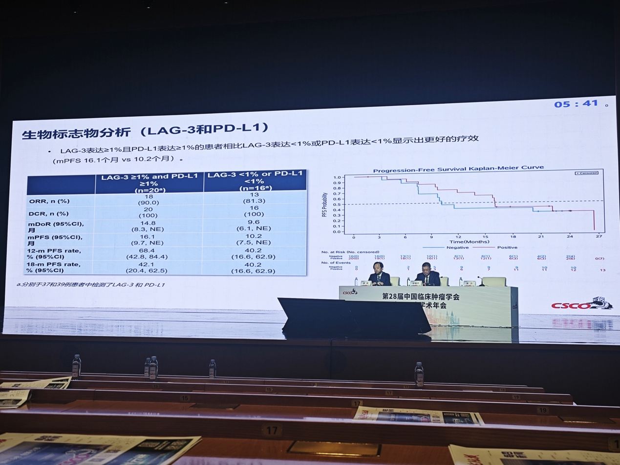 研究对LAG-3和PD-L1的表达进行了探索性分析。结果显示,在LAG-3与PD-L1双阳性的患者亚组中,疗效似乎更优,其ORR达到了90%,中位PFS更是延长至16.1个月,而其他患者的中位PFS为10.2个月。张力教授指出,尽管目前样本量有限,但这一趋势提示我们,LAG-3/PD-L1双阳性有望成为筛选未来获益人群的潜在优势生物标志物。