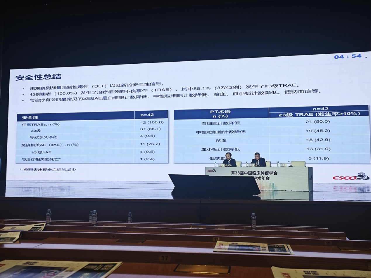 三联方案的安全性特征与已知信号一致,耐受性良好,未观察到新的、非预期的不良反应。治疗相关不良事件(TRAE)主要为化疗相关的血液学毒性,如白细胞和中性粒细胞减少等,均在临床可控范围内。