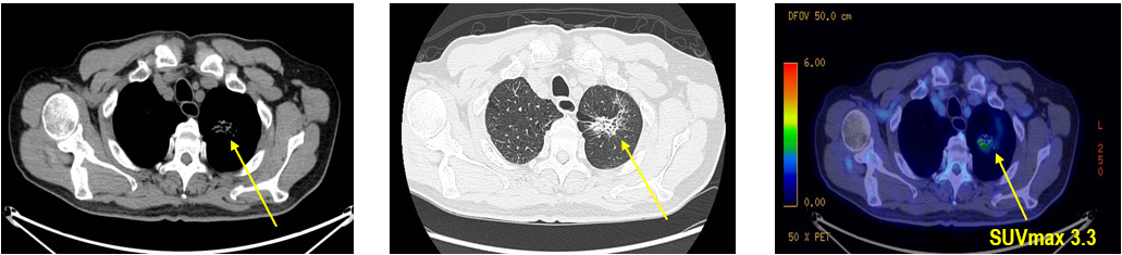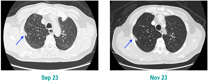 2023年9月,因血尿入院检查时,偶然发现肺部占位性病变。