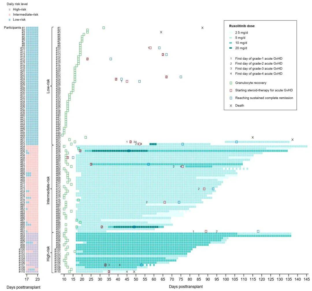 研究团队共招募了 110 位接受 HLA 半相合移植的血液病患者参与条件式自主 AI 药物处方临床试验。每个受试者在事先皆被告知 AI 将决定加强免疫抑制的最佳时机和剂量,也被告知医生可能依据患者个别情况在 AI 处方基础上做调整修改。所有患者皆依照规定签署了知情同意书。