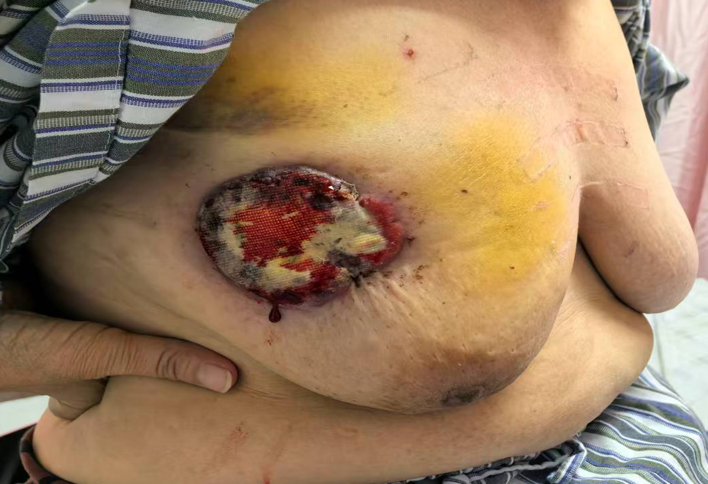 2025年5月5日,患者因右乳肿物破溃半年入院。