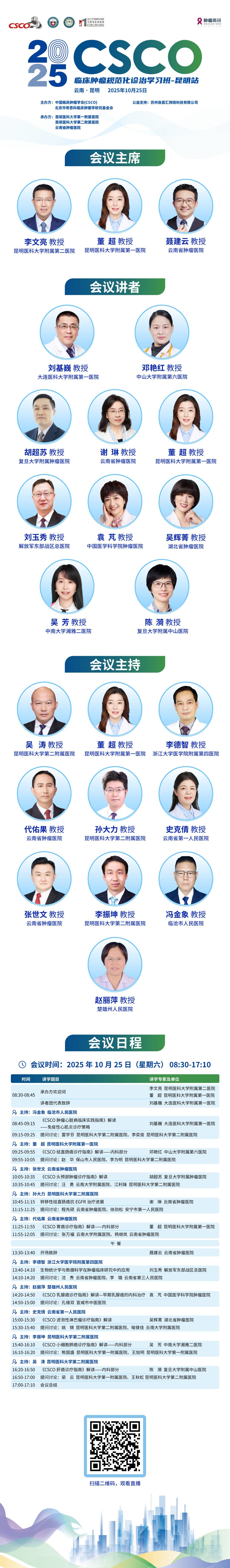 【会议预告】2025 CSCO临床肿瘤规范化诊治学习班(昆明站)