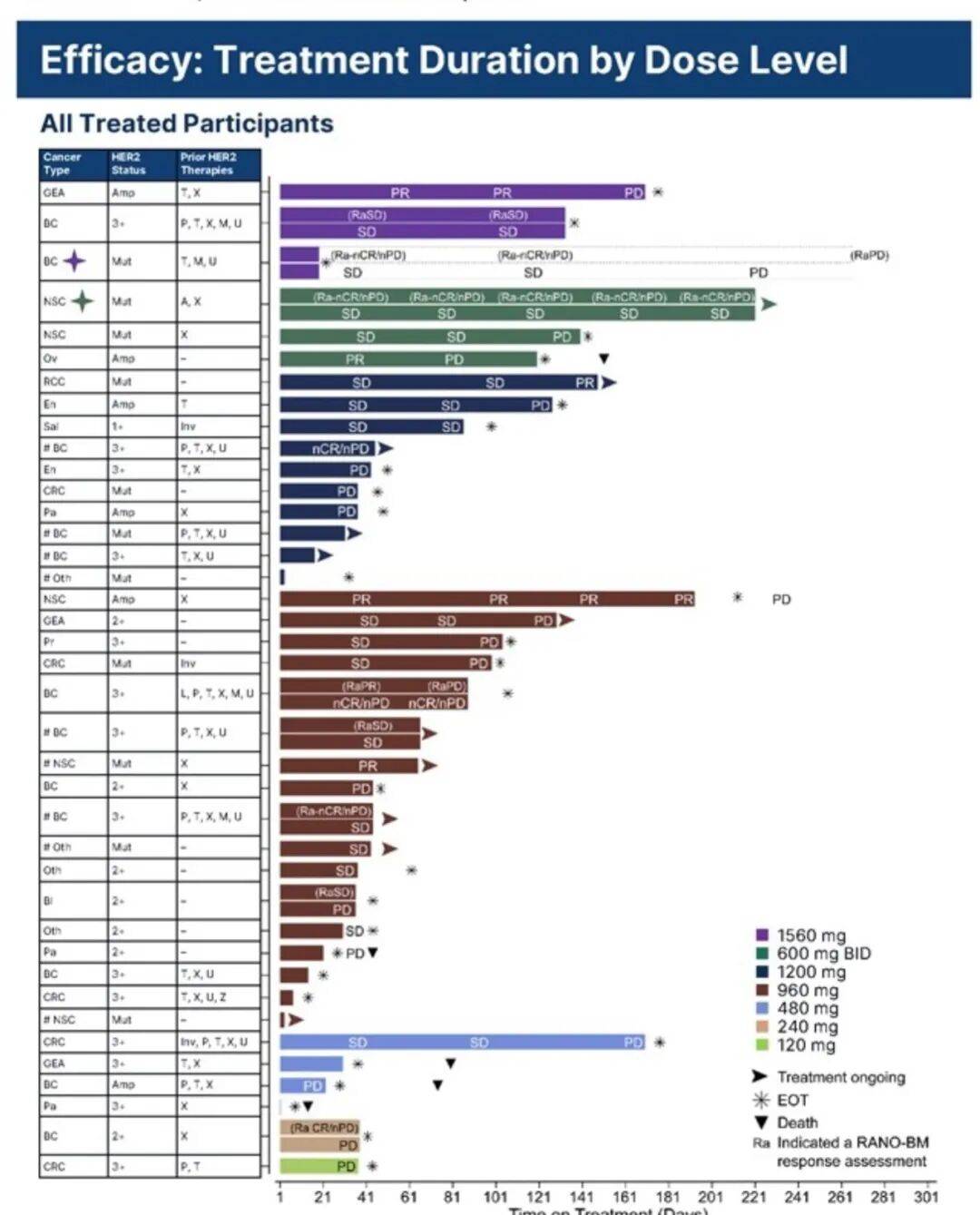 尽管数据尚处早期,但前景可期。目前试验已进入剂量优化阶段,正在对两个兼具耐受性和活性的剂量水平进行对比。