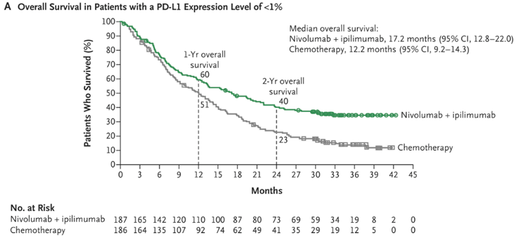 CheckMate-227:O+Y对比化疗用于PD-L1 < 1%人群OS