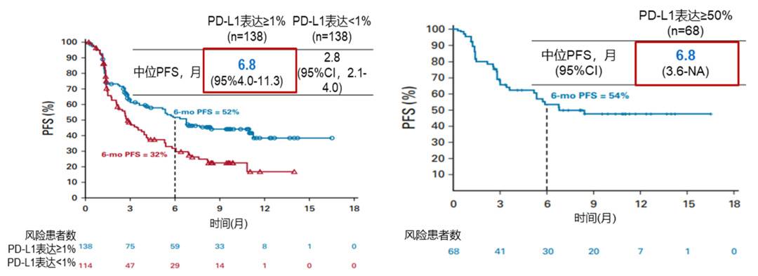 (左:PD-L1≥ 1% vs. <1%;右:PD-L1 ≥ 50%)
