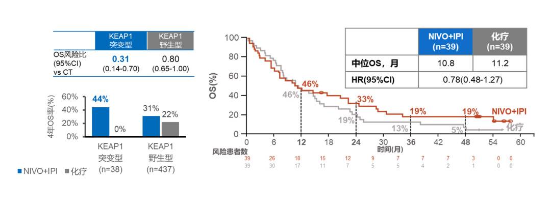 CheckMate-227:O+Y用于按KEAP1突变分层人群对比化疗的OS(左)