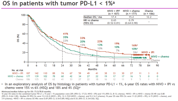 CheckMate-227(6年随访):PD-L1 < 1%人群OS