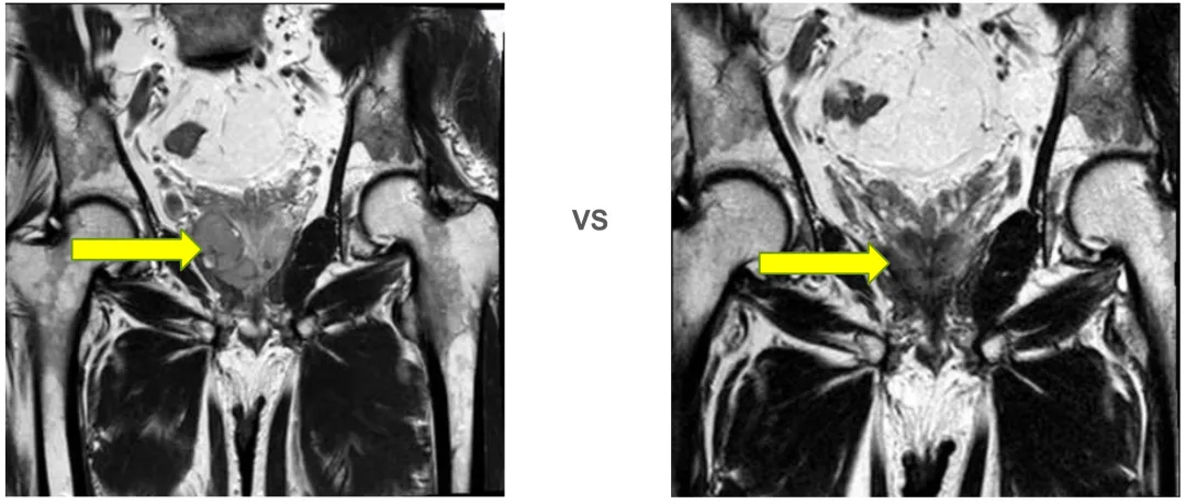 前列腺右侧周围带可疑肿瘤,与右侧肛提肌分界欠清、前列腺增生伴钙化、右侧股骨头异常信号灶,考虑退行性改变。