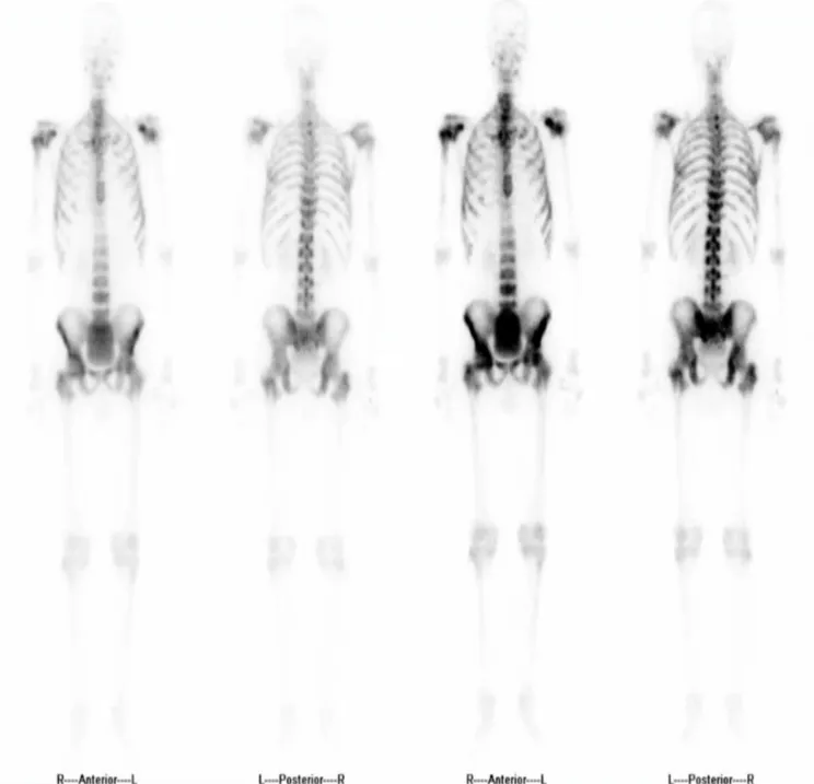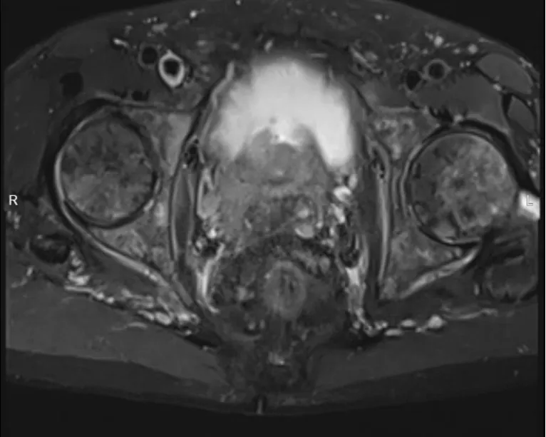 3. 骨盆、两侧股骨上段及所示腰骶椎信号不均匀伴强化,转移可能,建议骨ECT检查。