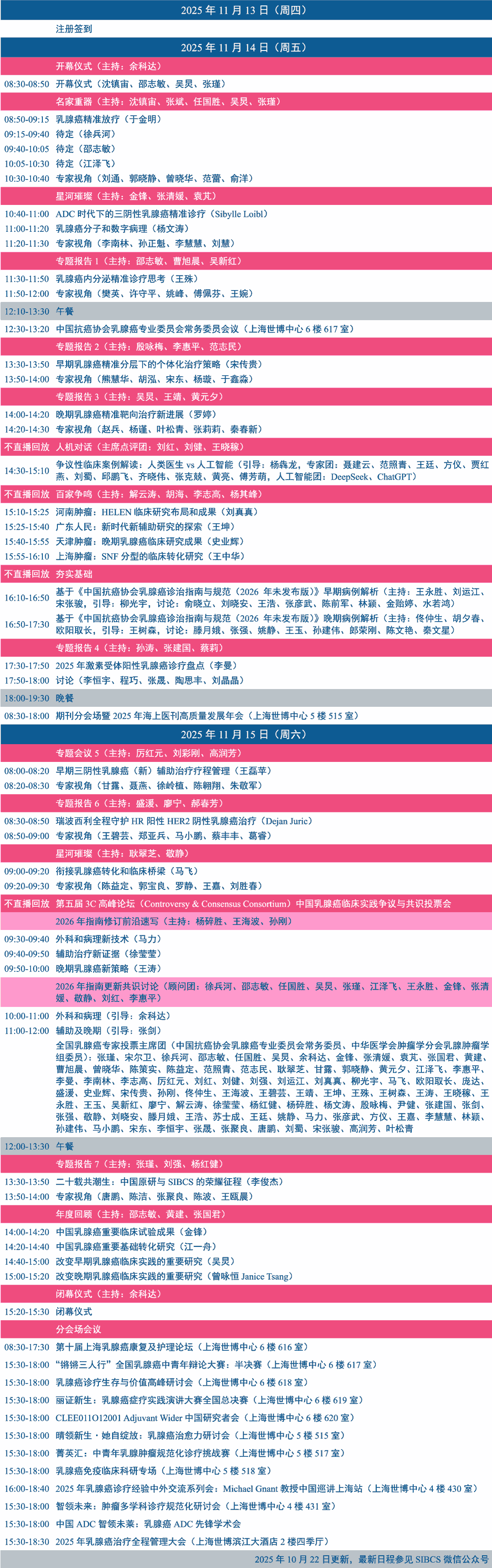 再次热诚地欢迎全国同道们来参加将于2025年11月13-15日举行的第二十届SIBCS。二十年,是中国乳腺癌诊疗水平蓬勃发展并飞速提高的20年,我们既是参与者,也是见证人!