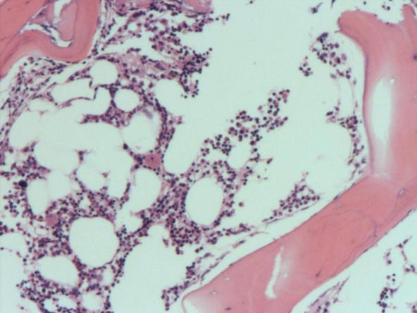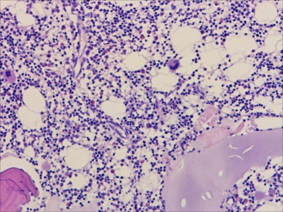 骨髓检查:骨髓涂片、流式细胞学及活检均未见肿瘤细胞。随访评估CR。