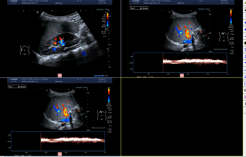 肝脏实质性占位病变,考虑肿瘤合并破裂出血。门静脉声像异常,考虑门静脉血栓形成。