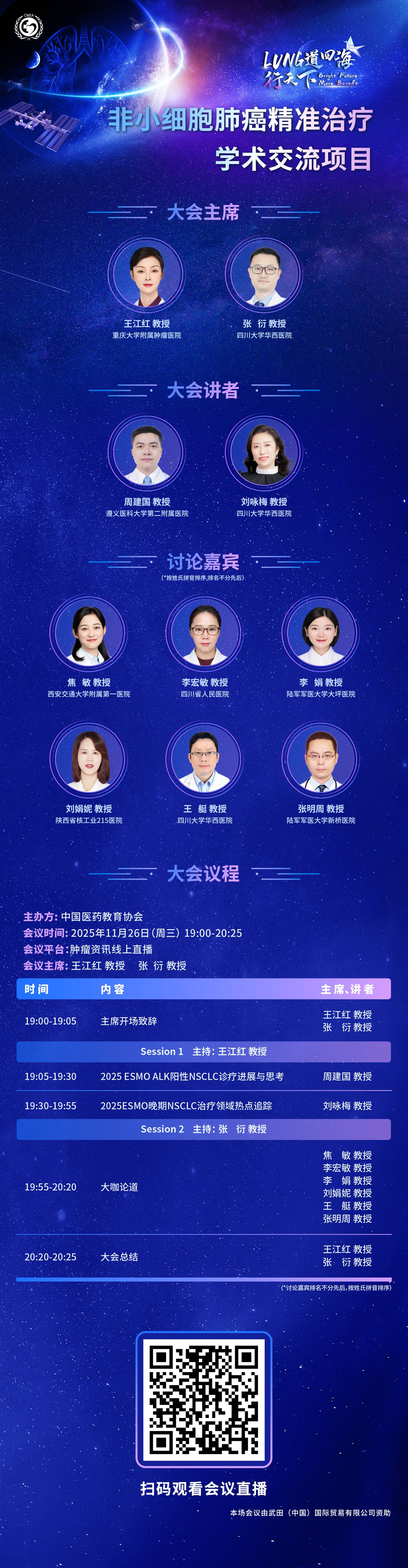 随着NSCLC精准治疗的发展,肺癌靶向治疗已成为里程碑式的进步。为加速前沿成果的中国化落地,推动多学科协作与精准诊疗水平提升,由武田制药支持的“中国医药教育协会-非小细胞肺癌精准治疗学术交流项目”将于2025年11月26日19:00-20:25线上开启。诸多大咖相聚,共议精准治疗困局与破局之道。