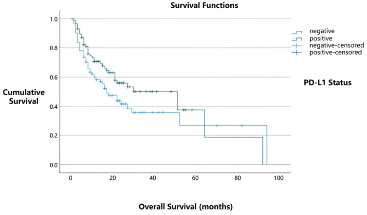 图1 对比PD-L1阳性与阴性患者的OS生存曲线